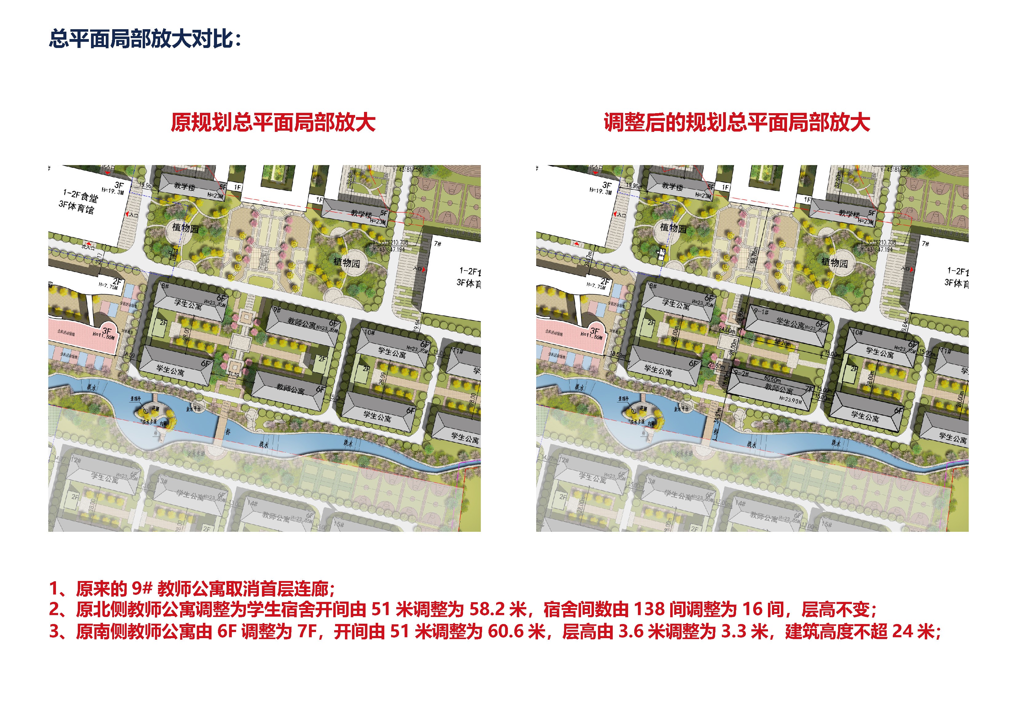 一、项目概况:该项目位于南环路北侧,蓼城大道(东)东侧,根据近年招生情况及教职工实际住宿情况,现霍邱县文峰教育有限公司申请对原审批的9#单体楼进行调整,主要调整内容为:取消首层连廊,将9#教师公寓调整为9-1#教师公寓和9-2#学生公寓,9-1#教师公寓面宽比原方案增加9.6米,楼层由6层增加至7层,9-2#学生公寓面宽比原方案增加7.2米,总建筑面积增加3220平米。