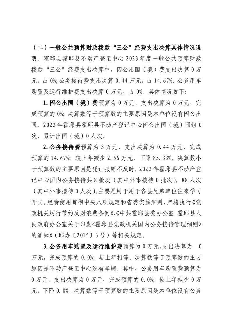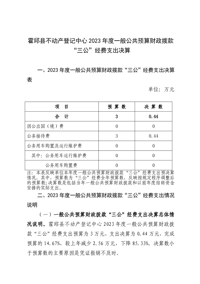 霍邱县不动产登记中心2023年度一般公共预算财政拨款“三公”经费支出决算