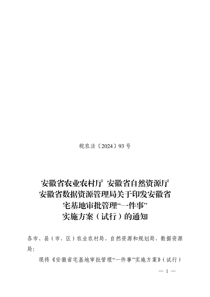 安徽省农业农村厅、安徽省自然资源厅、安徽省数据资源管理局《关于印发安徽省宅基地审批管理“一件事“(试行)》的通知