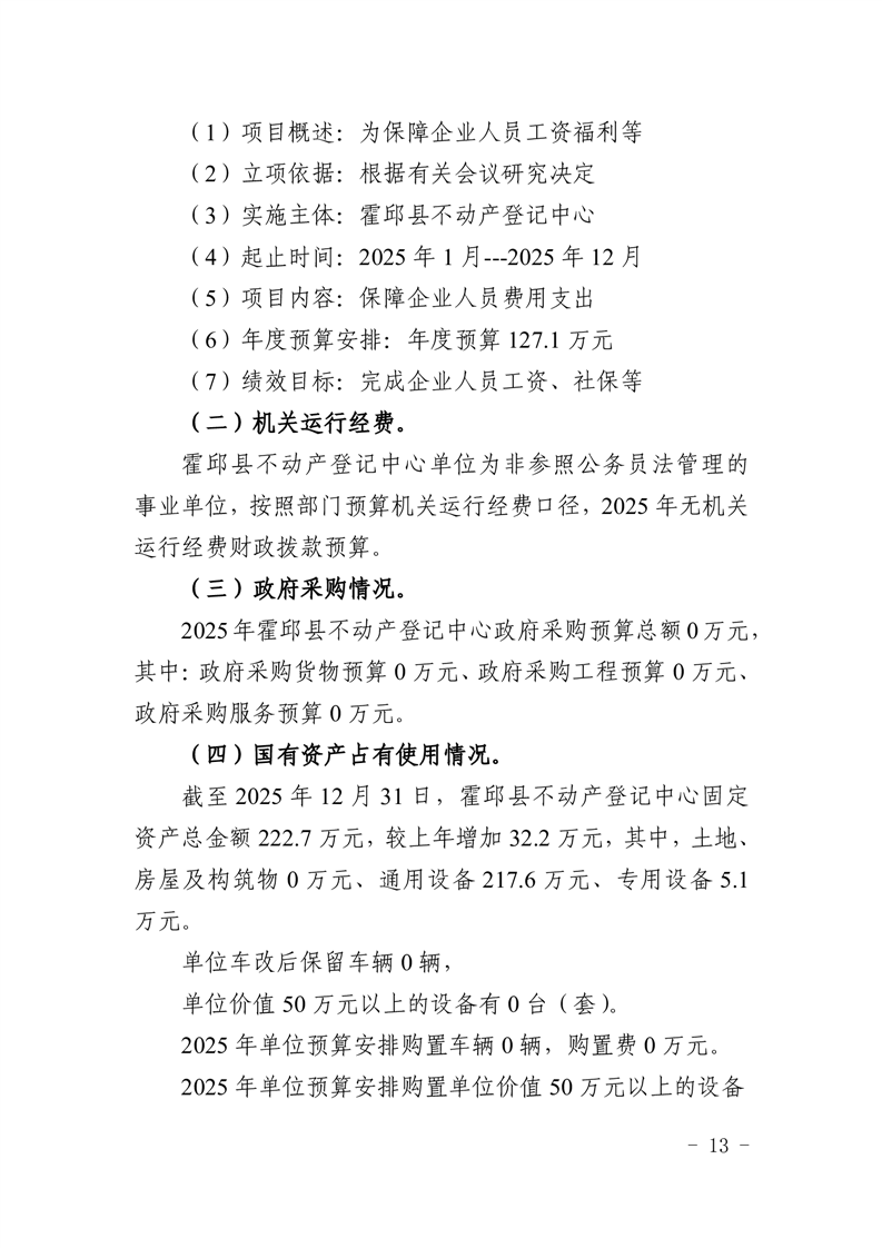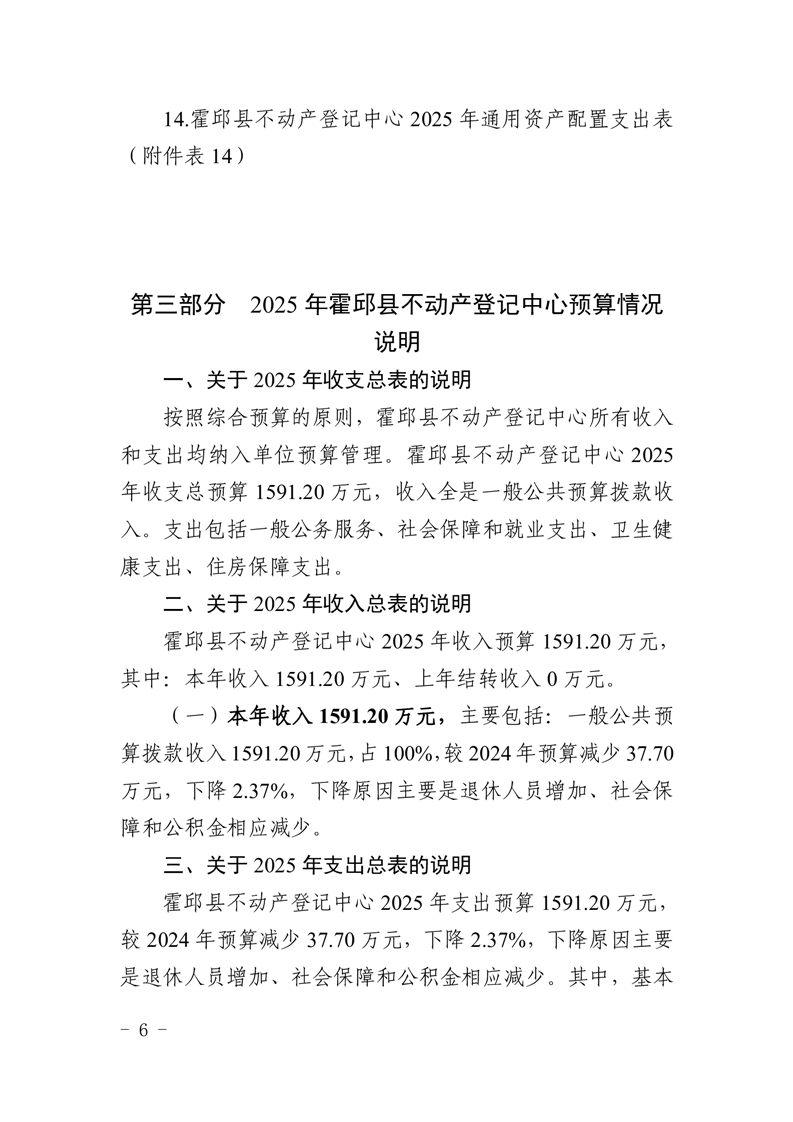 霍邱县不动产登记中心2025年单位预算公开