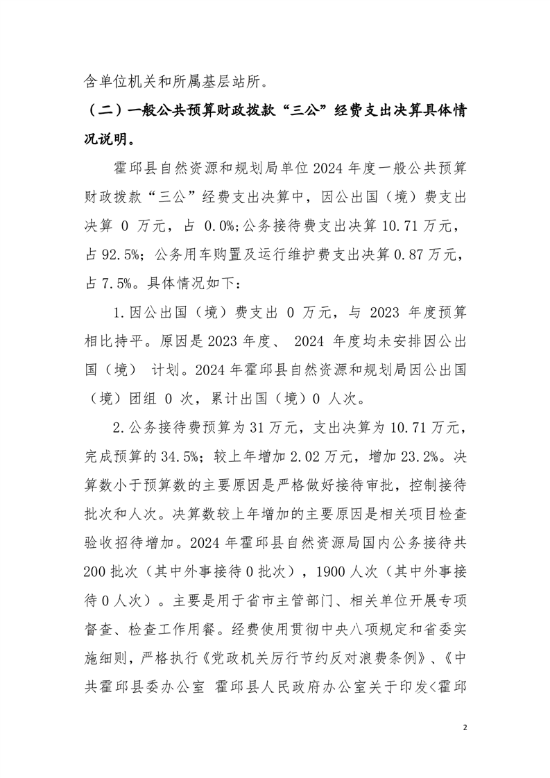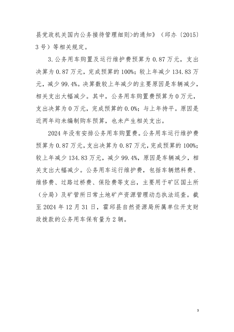 霍邱县自然资源和规划局单位 2024 年度一般公共预算财政拨款“三公”经费支出决算情况说明