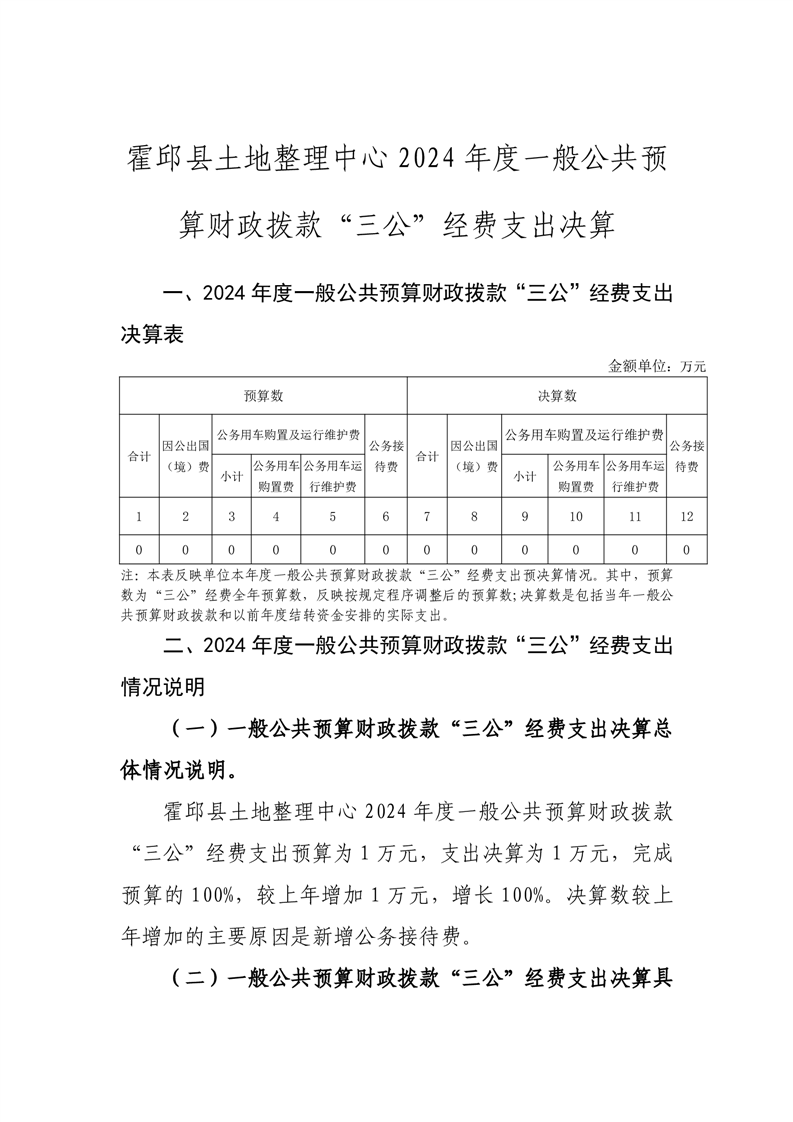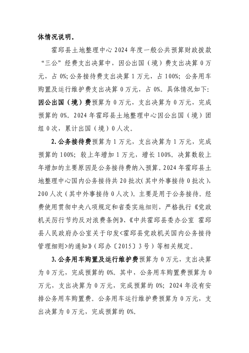 霍邱县土地整理中心2024年度一般公共预算财政拨款“三公”经费支出决算