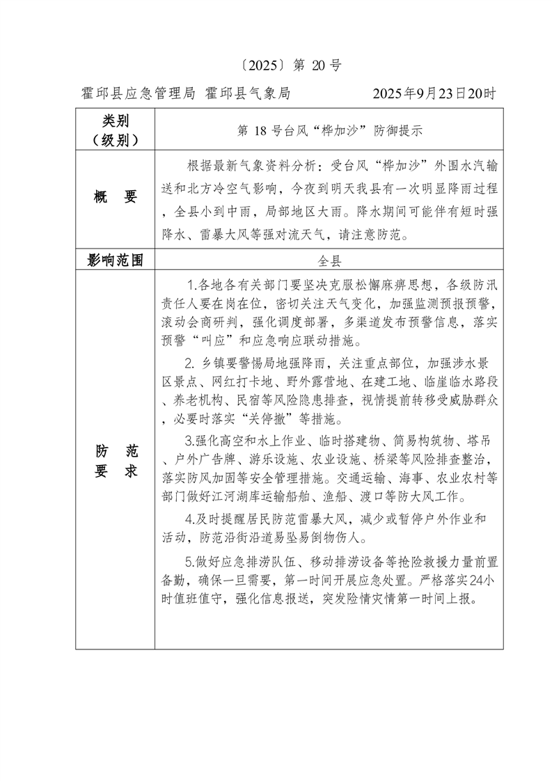 霍邱县气象灾害防御提示(预警〔2025〕第 20 号)