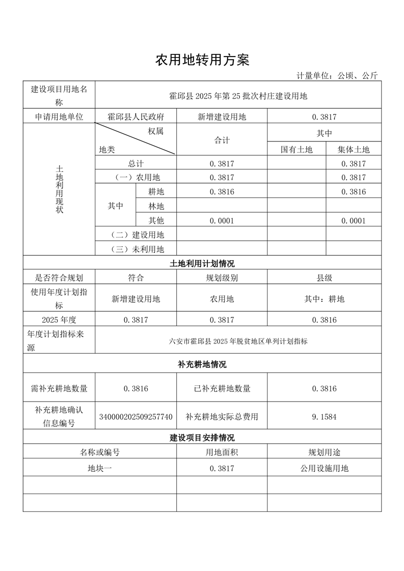 霍邱县2025年第25批次村庄建设用地(农转用方案)