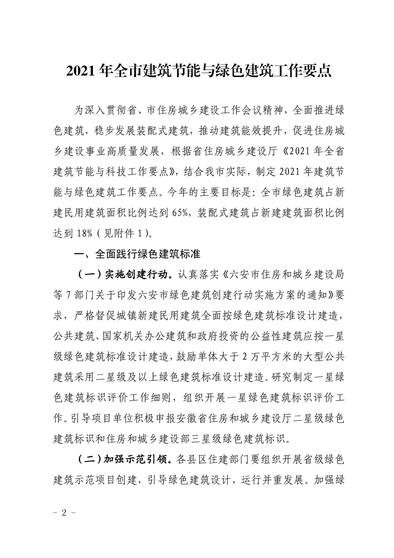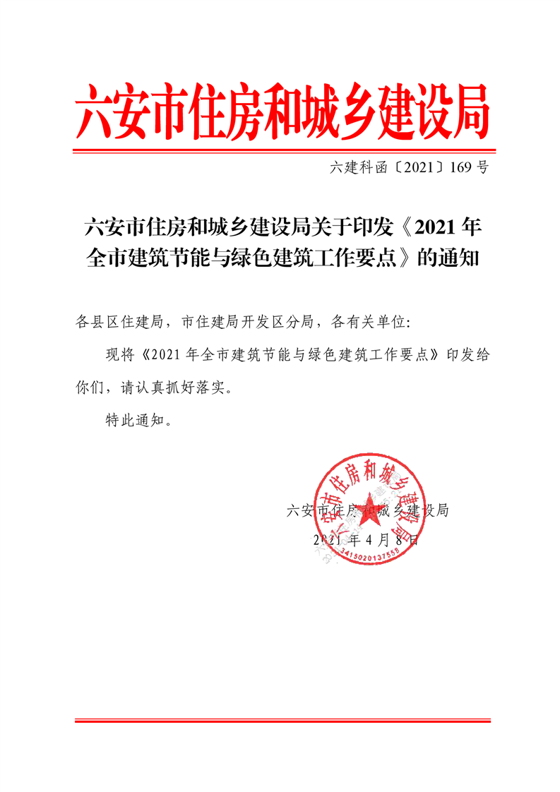 六安市住房和城乡建设局关于印发《2021年全市建筑节能与绿色建筑工作要点》的通知