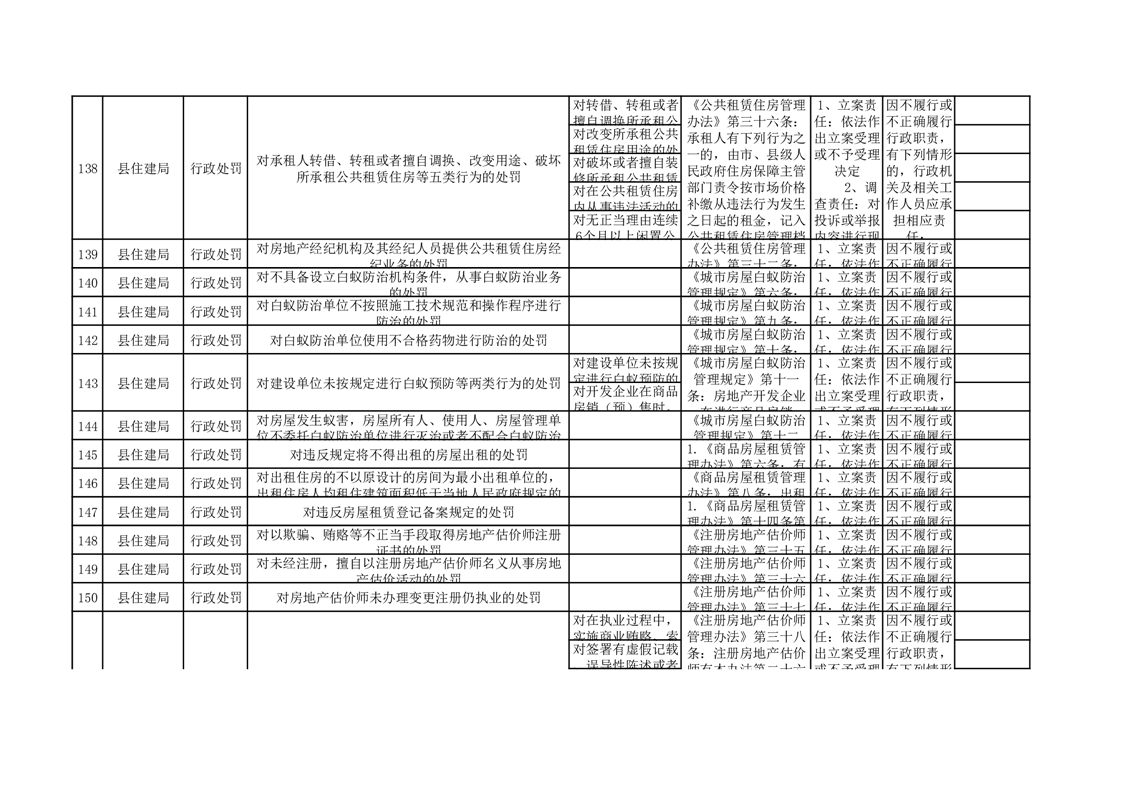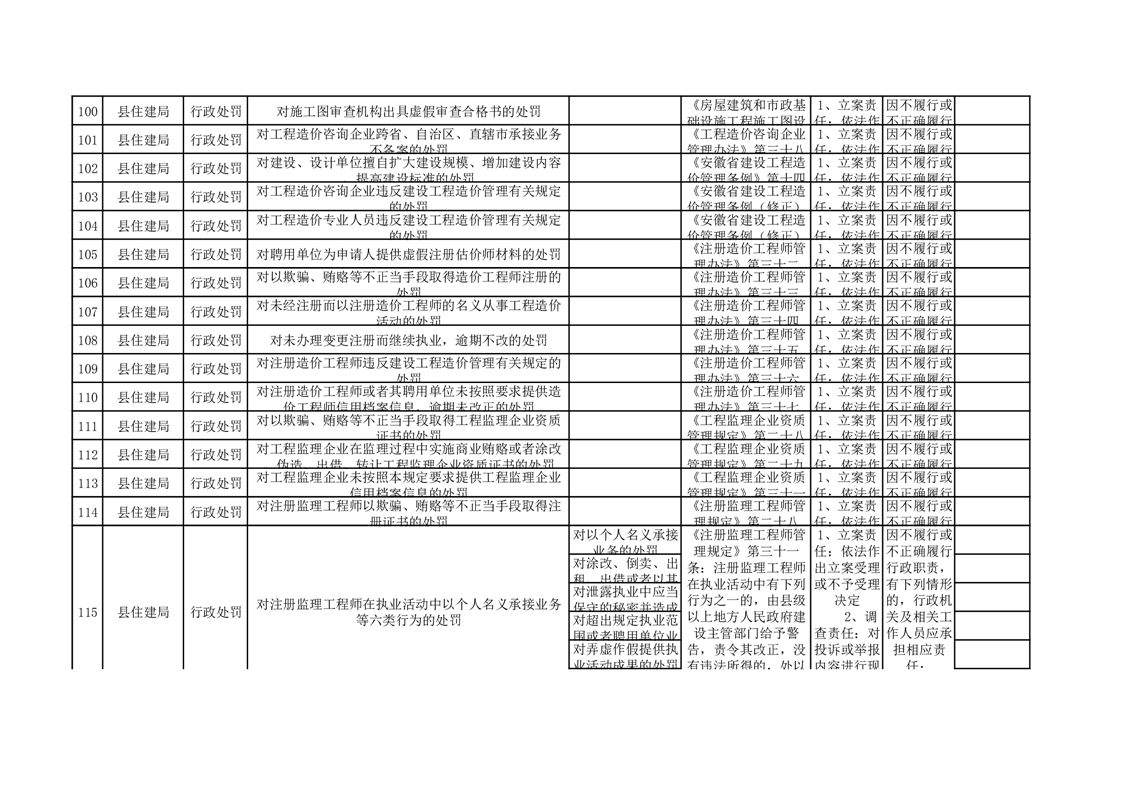 霍邱县住房和城乡建设局行政处罚目录(2023年版)
