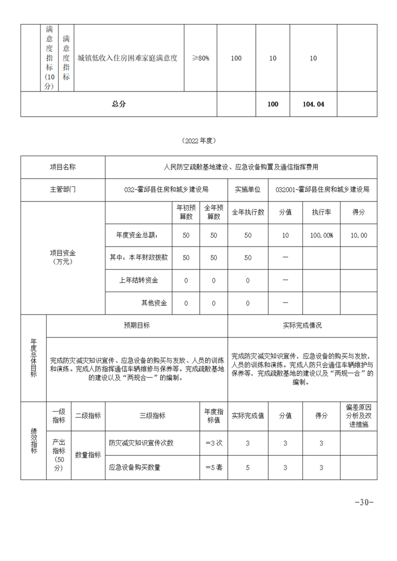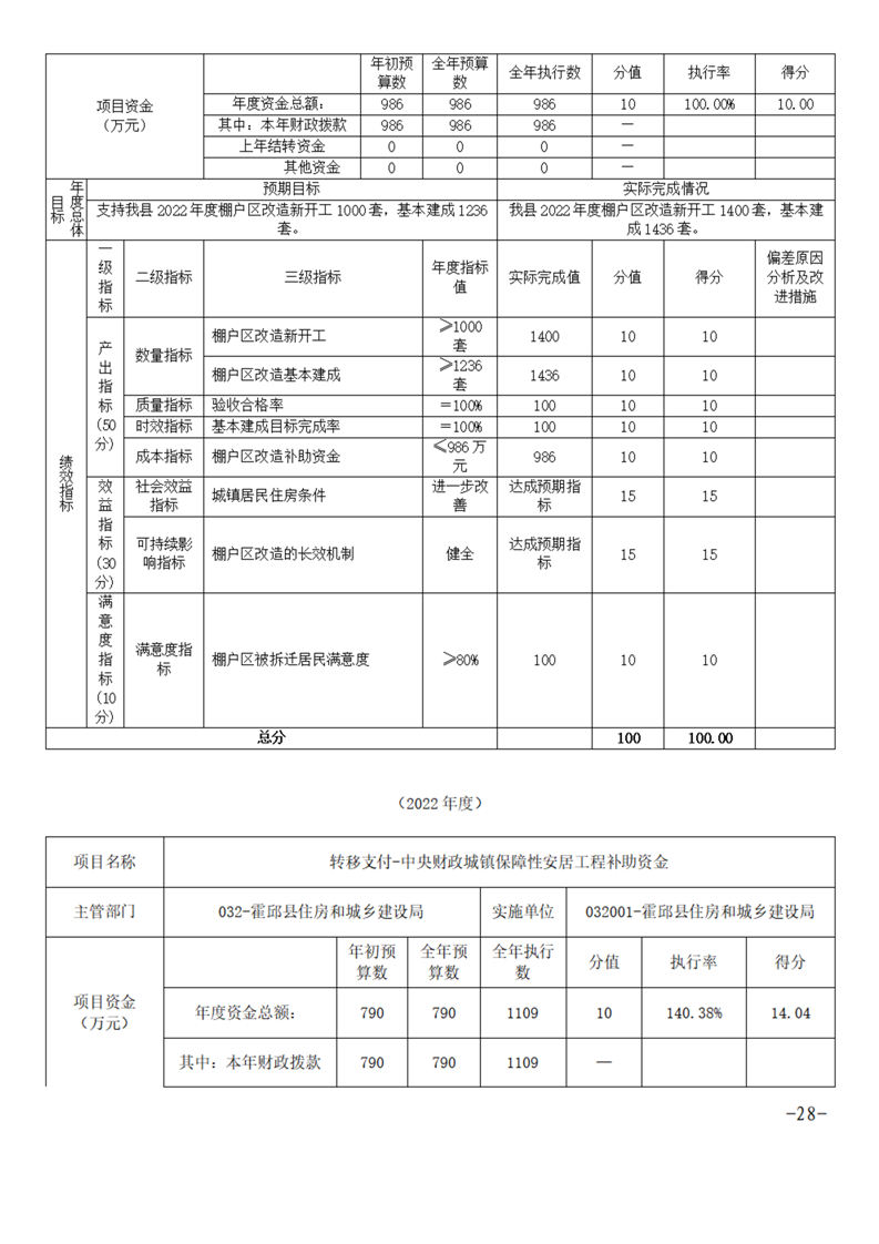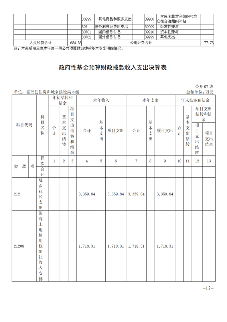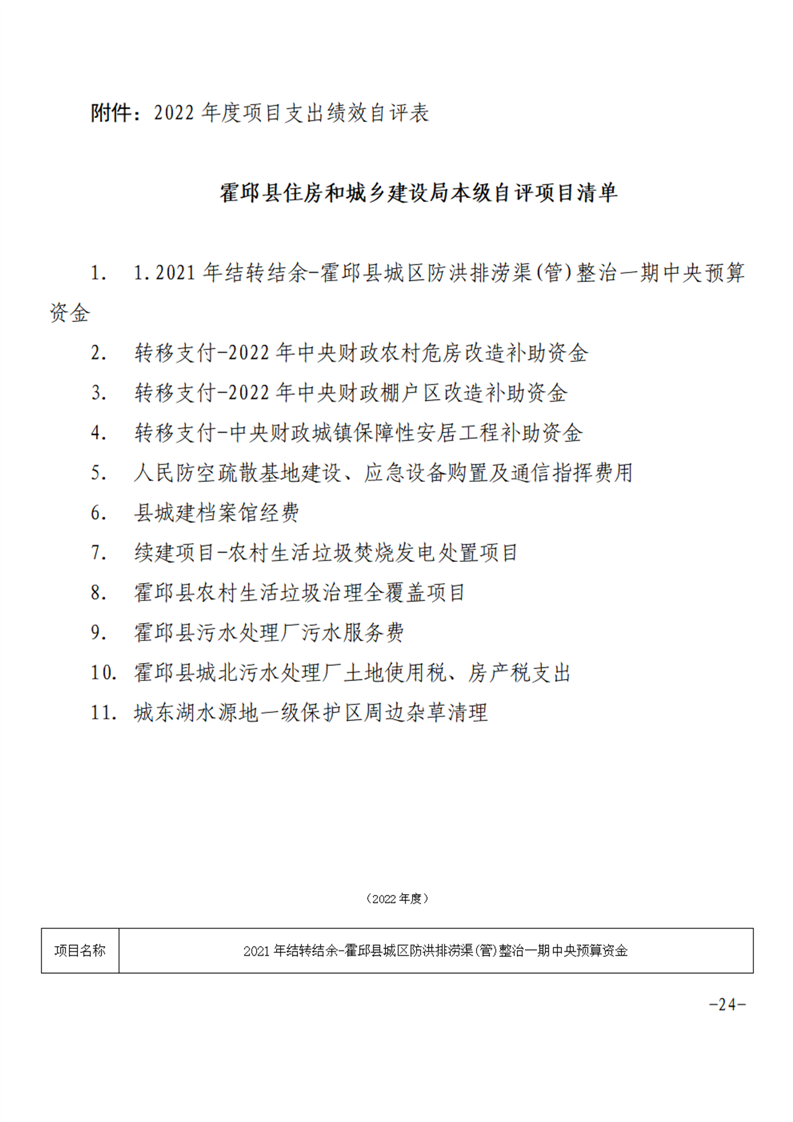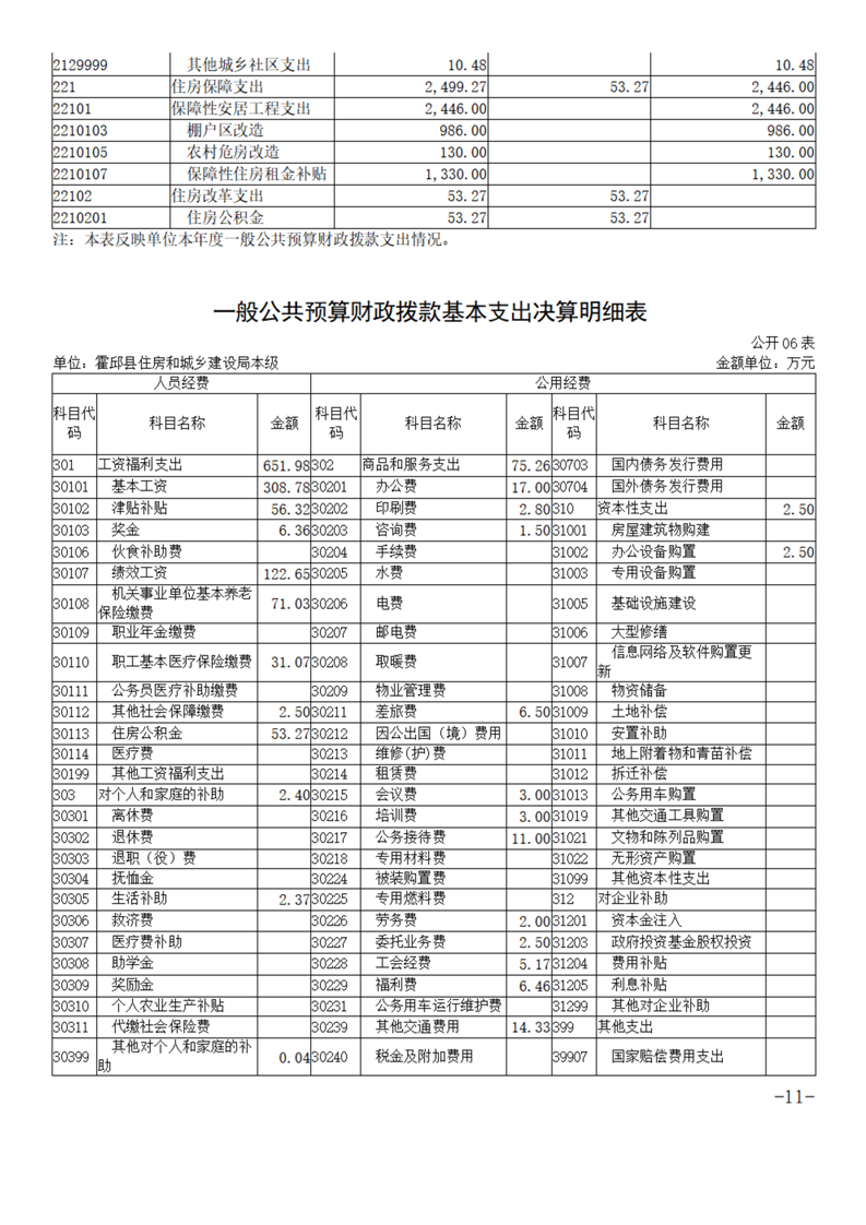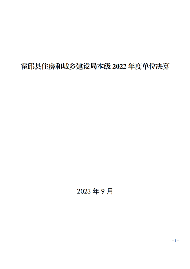 霍邱县住房和城乡建设局2022年本级单位决算公开