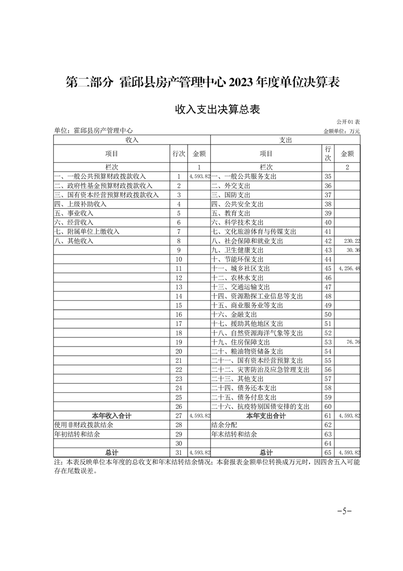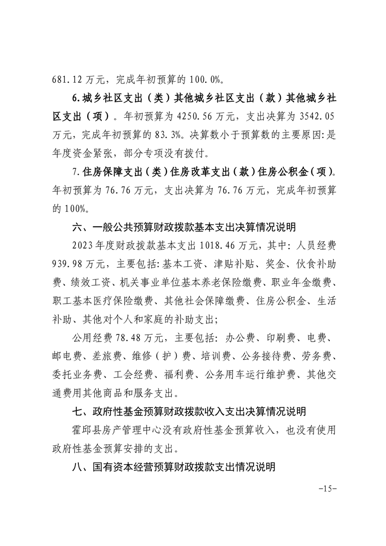 霍邱县房产管理中心2023年度单位决算