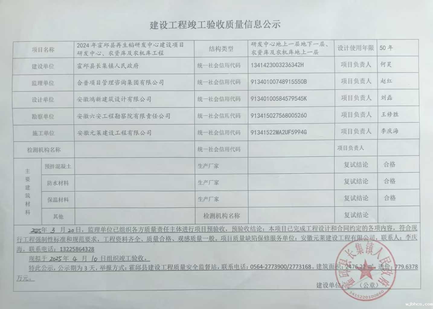2024年霍邱县再生稻研发中心建设项目研发中心、农资库及农机库工程