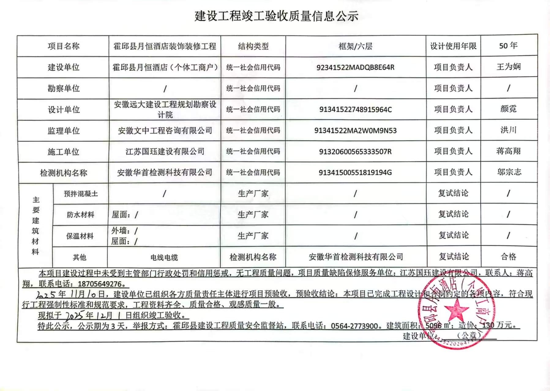 霍邱县月恒酒店装饰装修工程