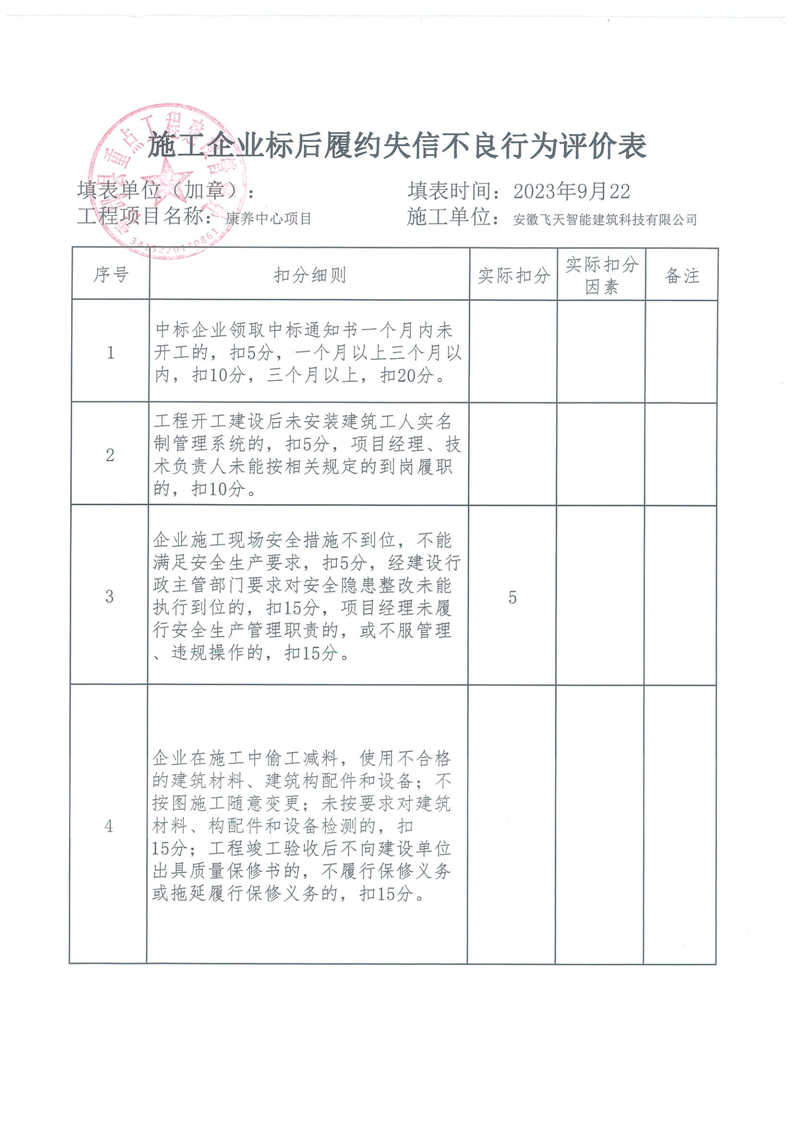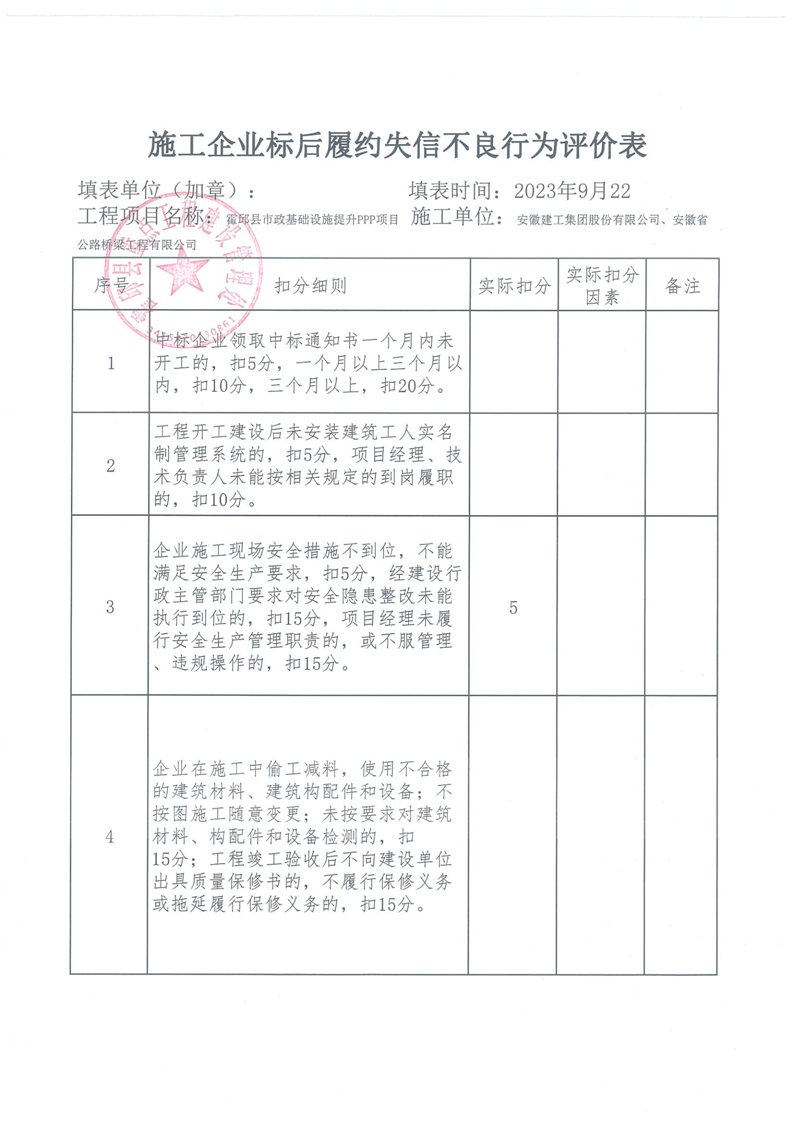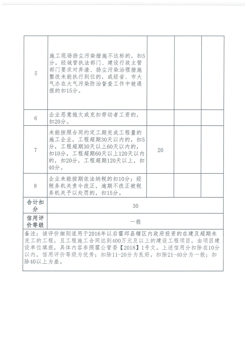 霍邱县重点处2023年三季度施工企业标后履约情况通报