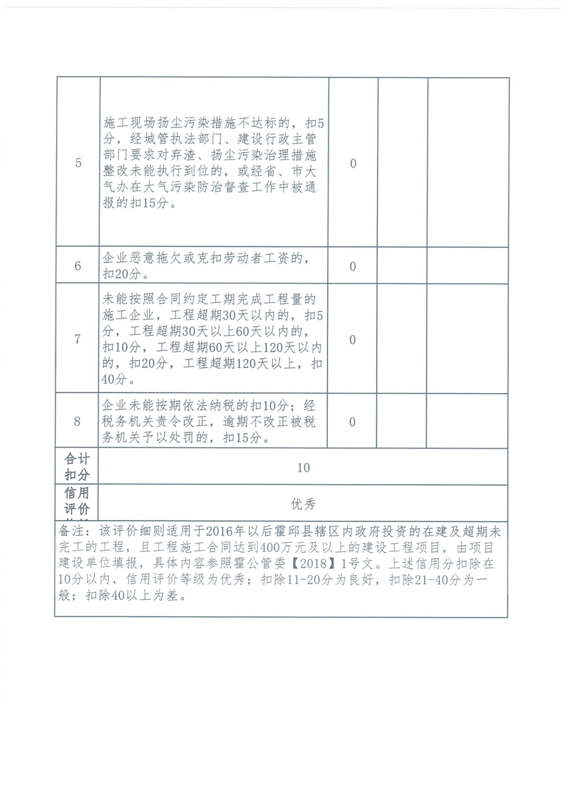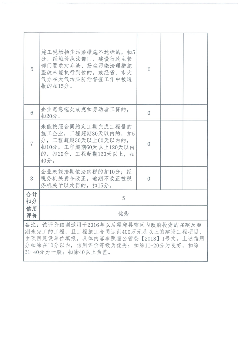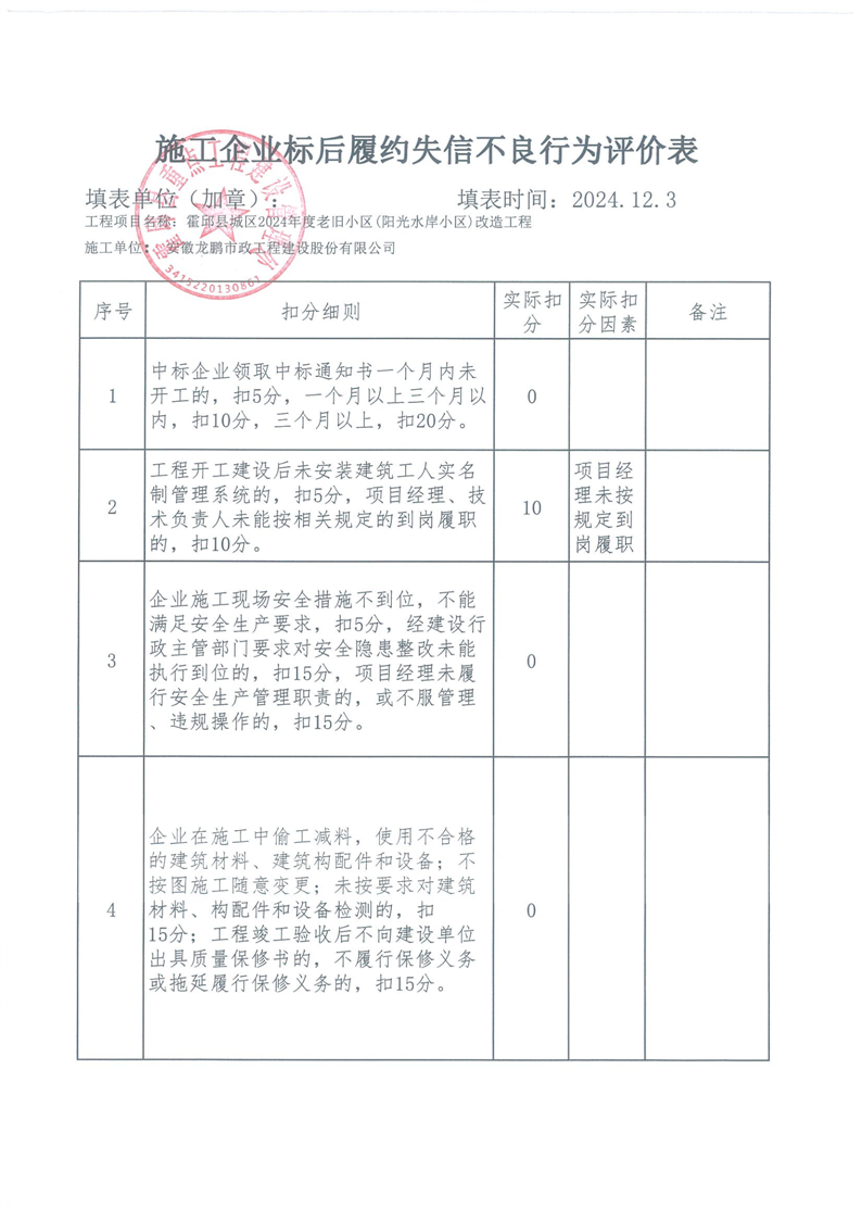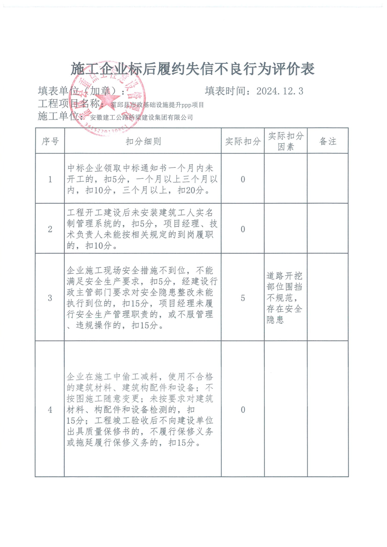 霍邱县重点处2024年四季度施工企业标后履约情况通报