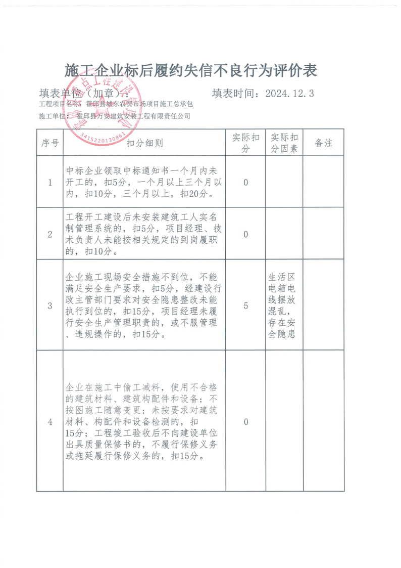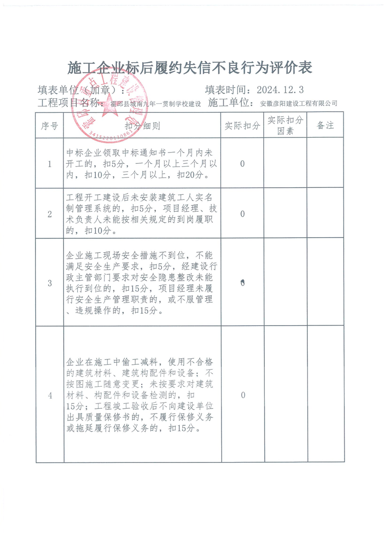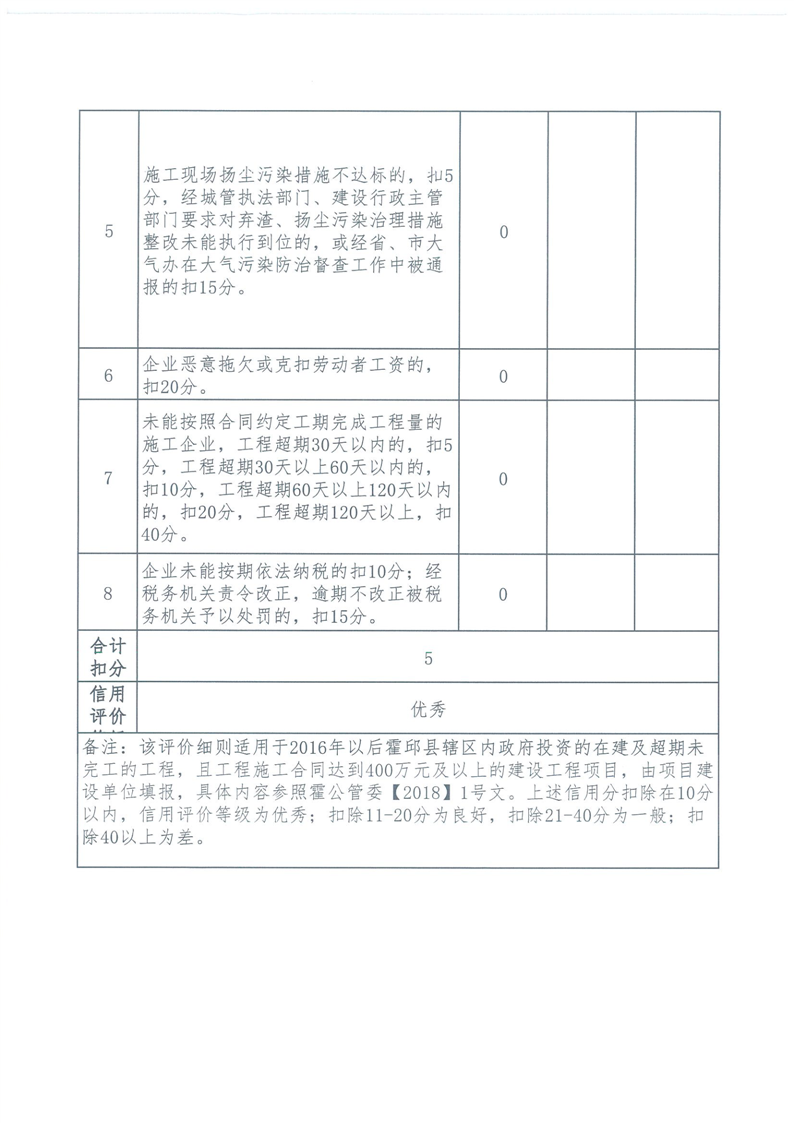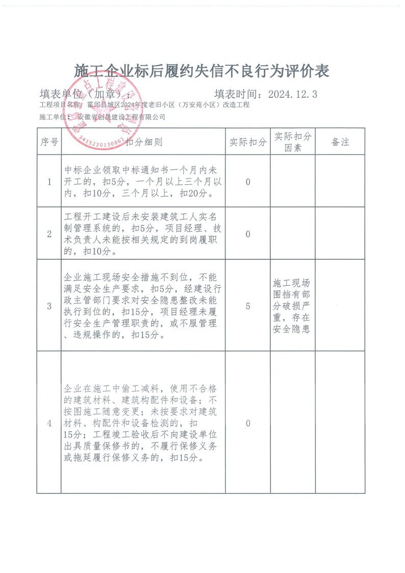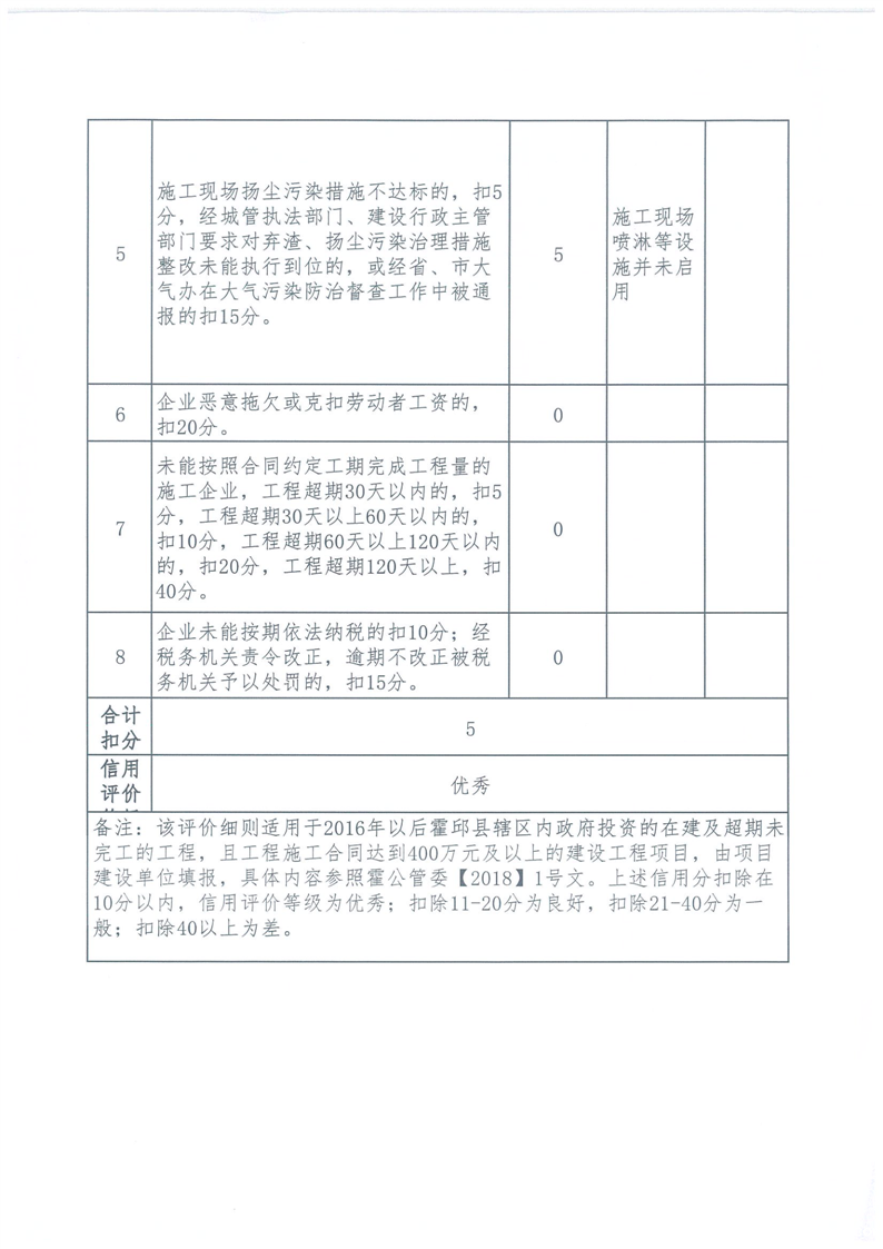 霍邱县重点处2024年四季度施工企业标后履约情况通报