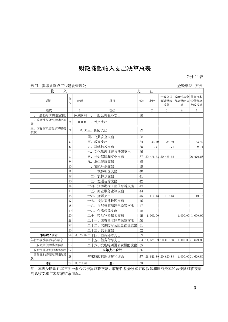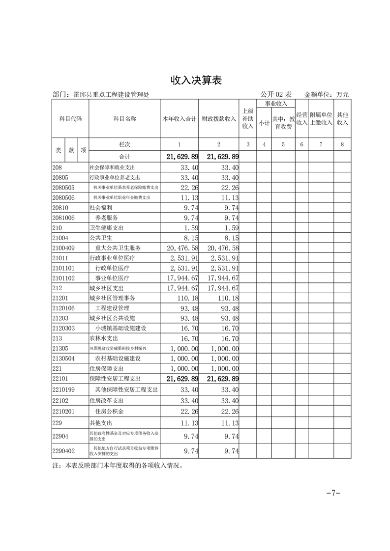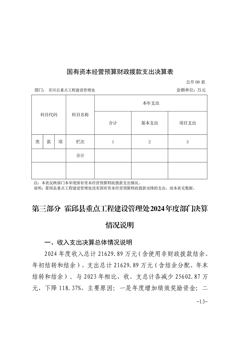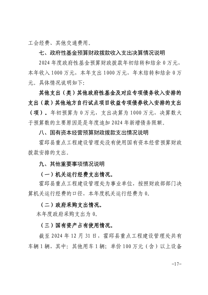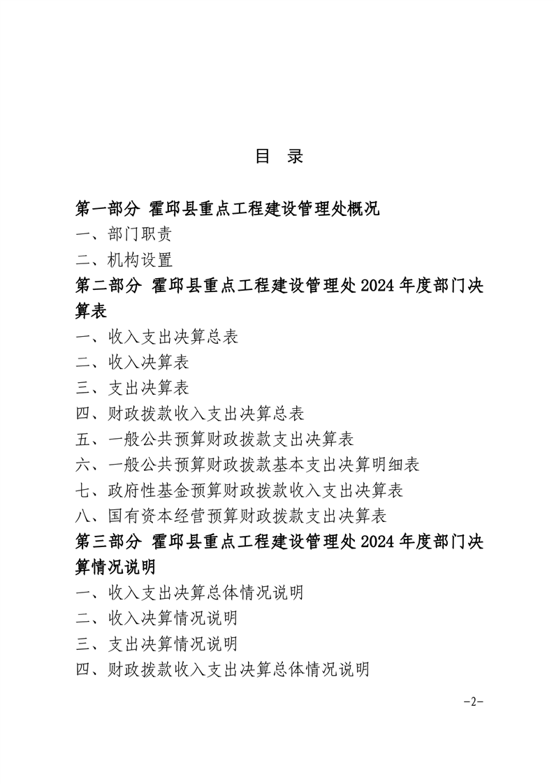 霍邱县重点工程建设管理处2024年度部门决算