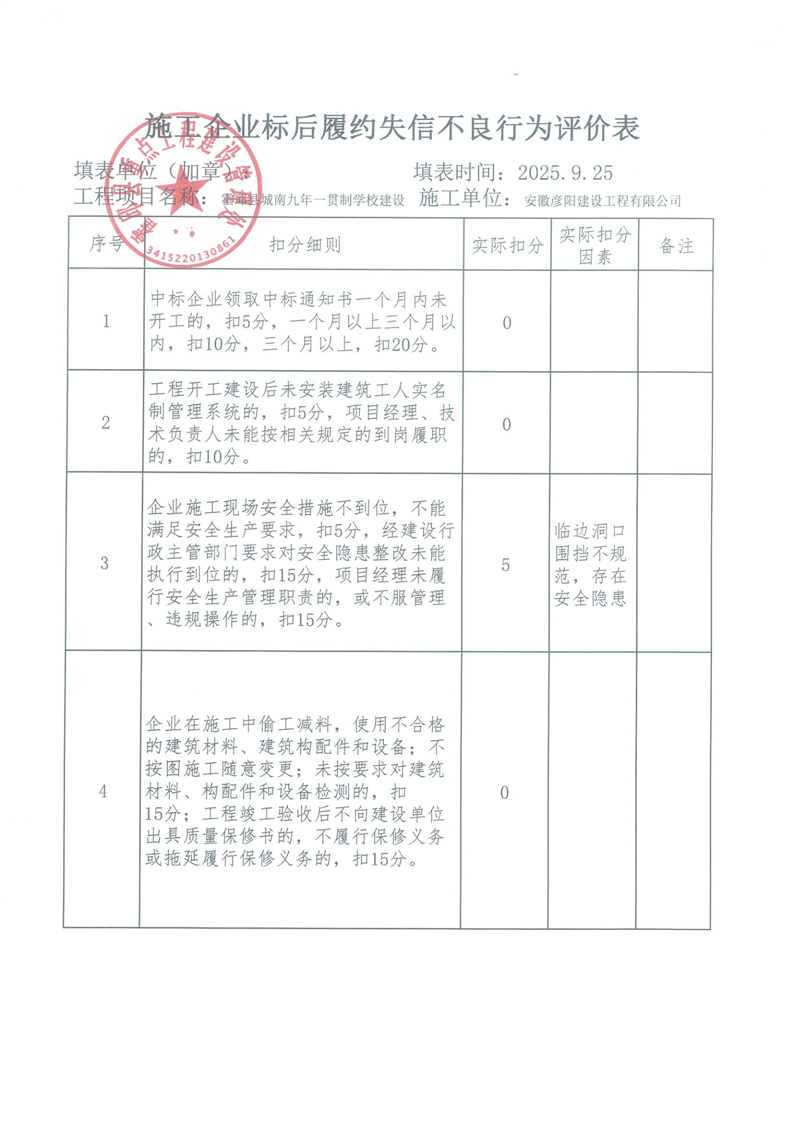 霍邱县重点处2025年三季度施工企业标后履约情况通报
