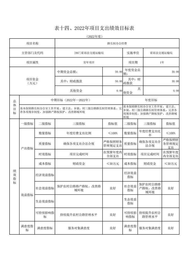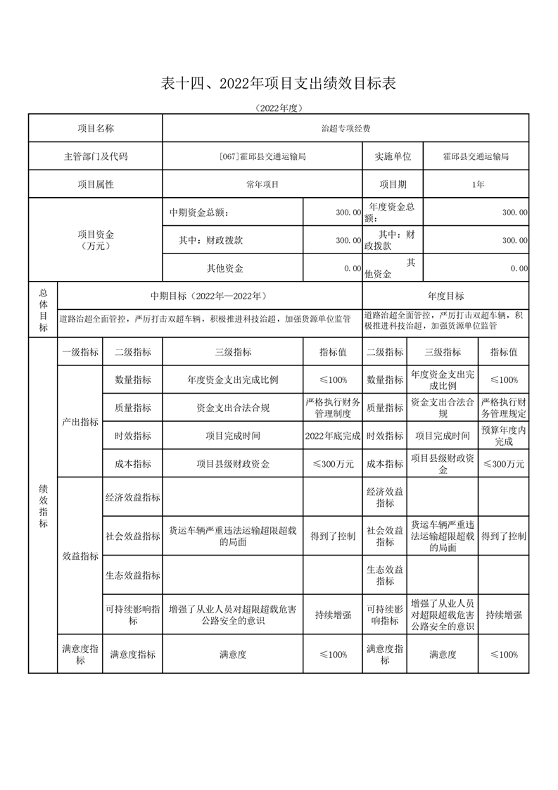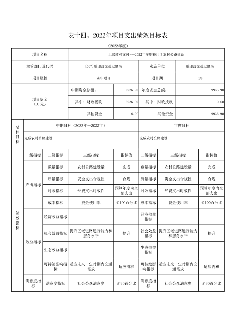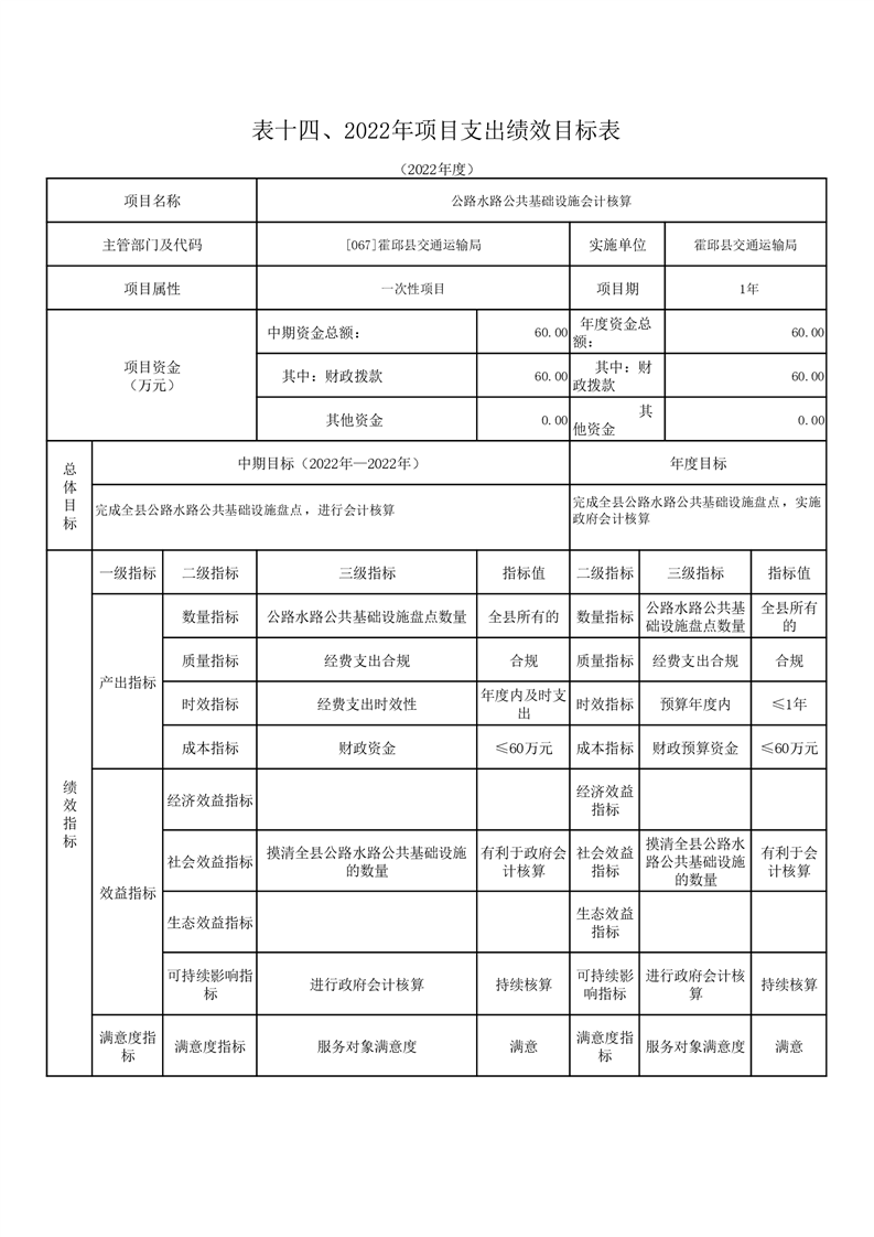 霍邱县交通运输局2022年项目绩效目标表(部门)