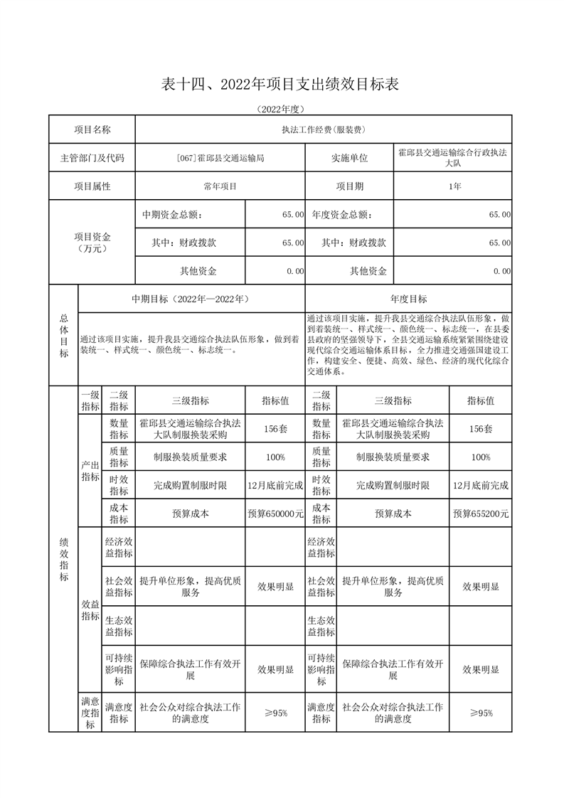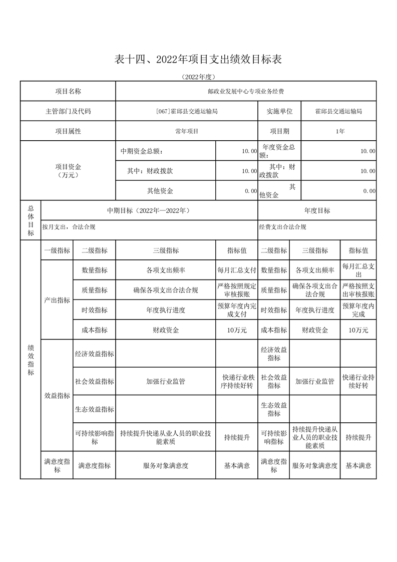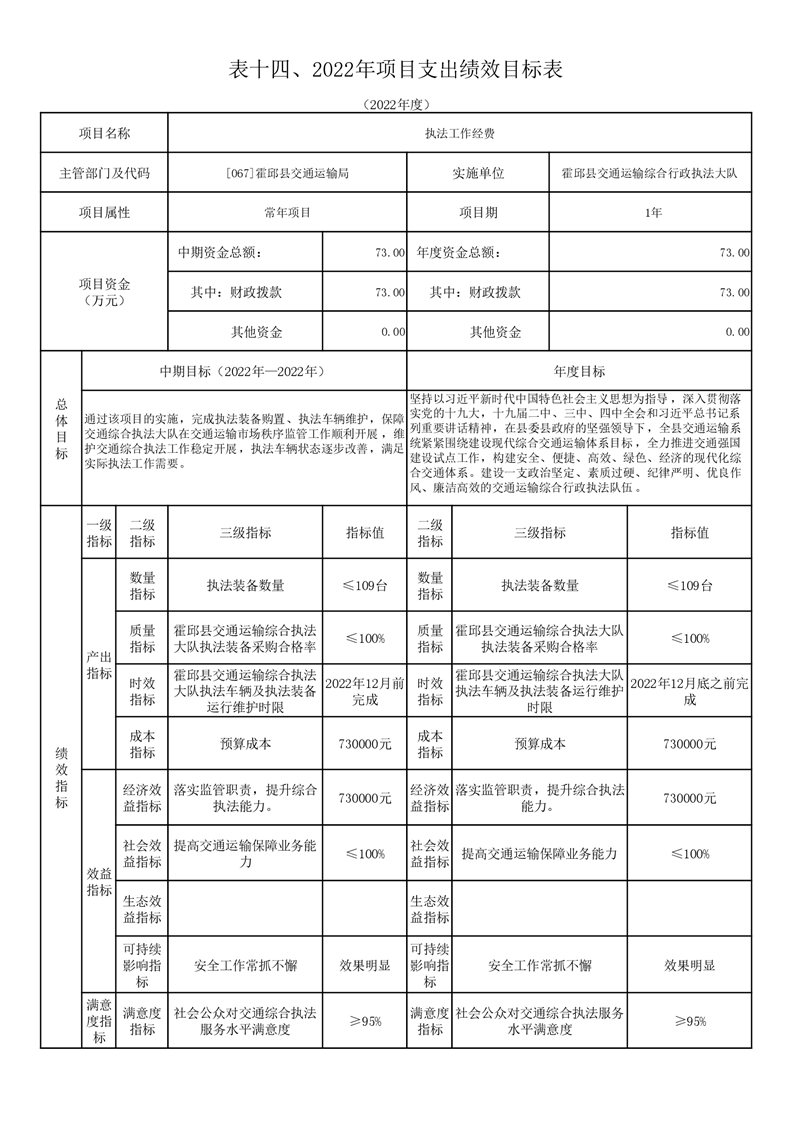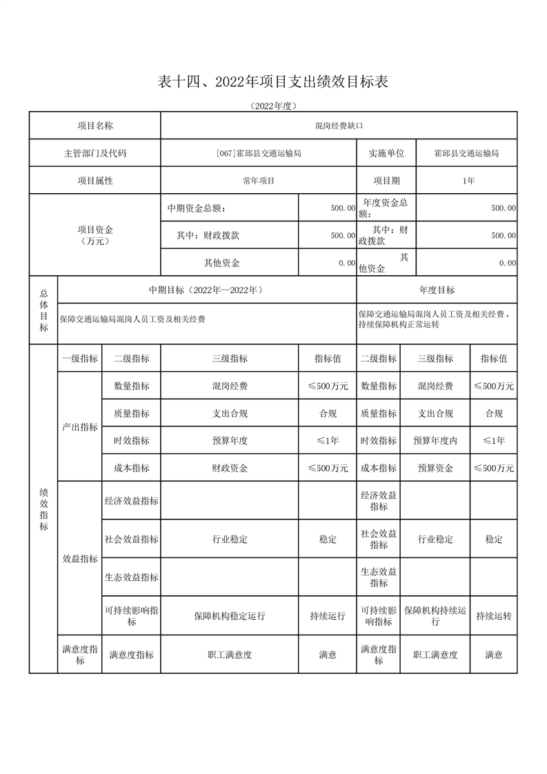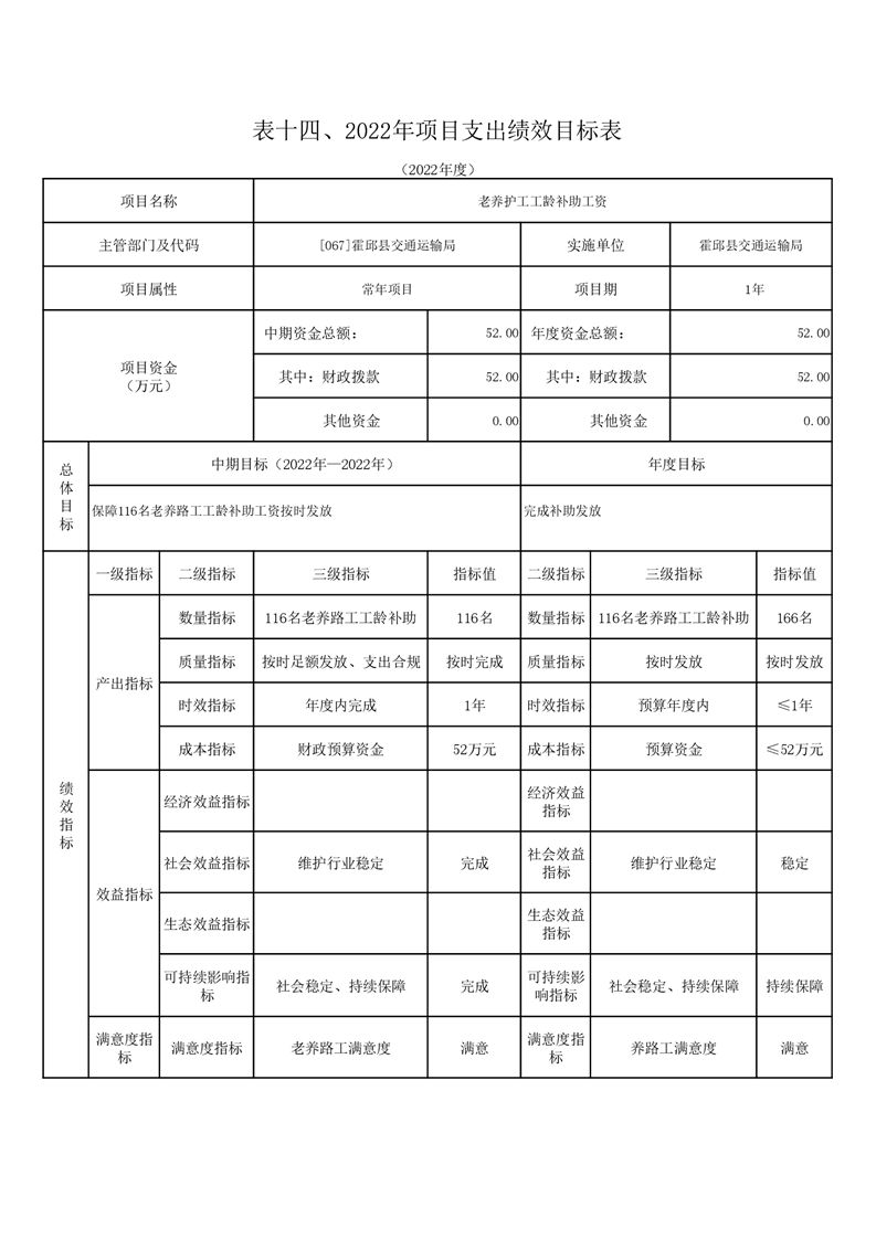 霍邱县交通运输局2022年项目绩效目标表(部门)