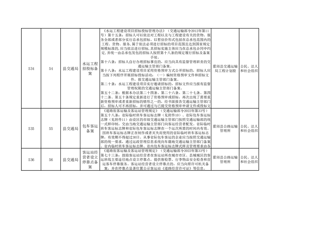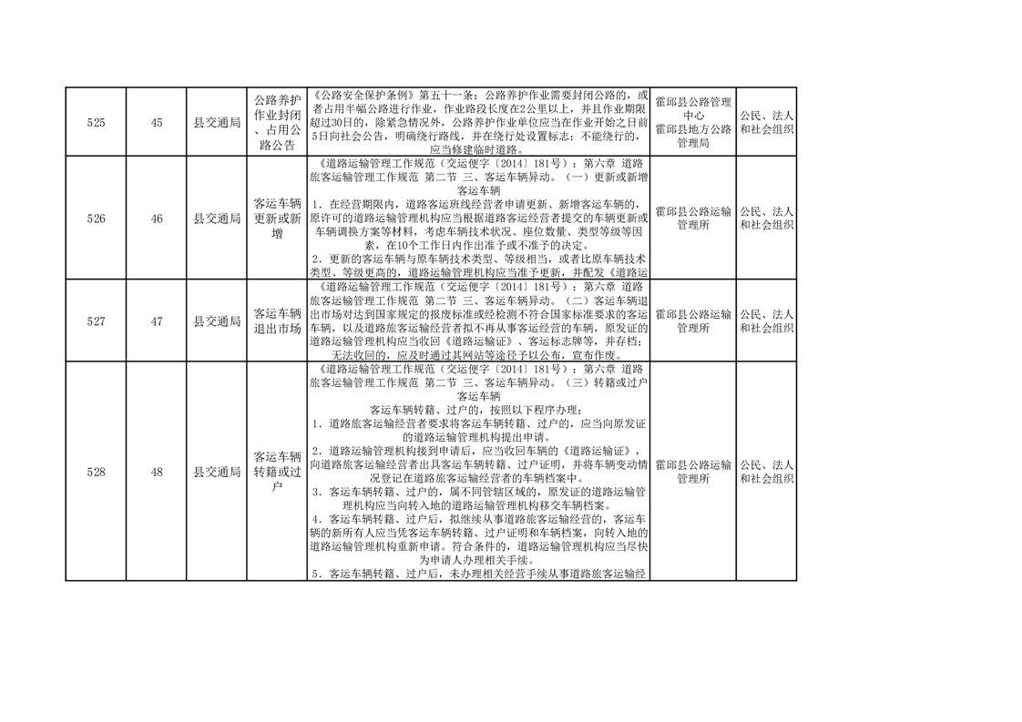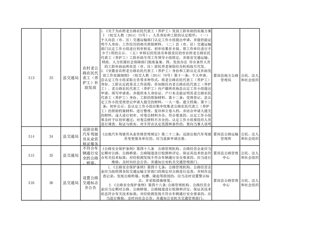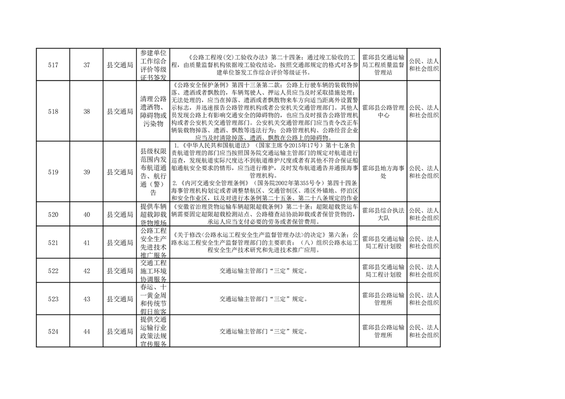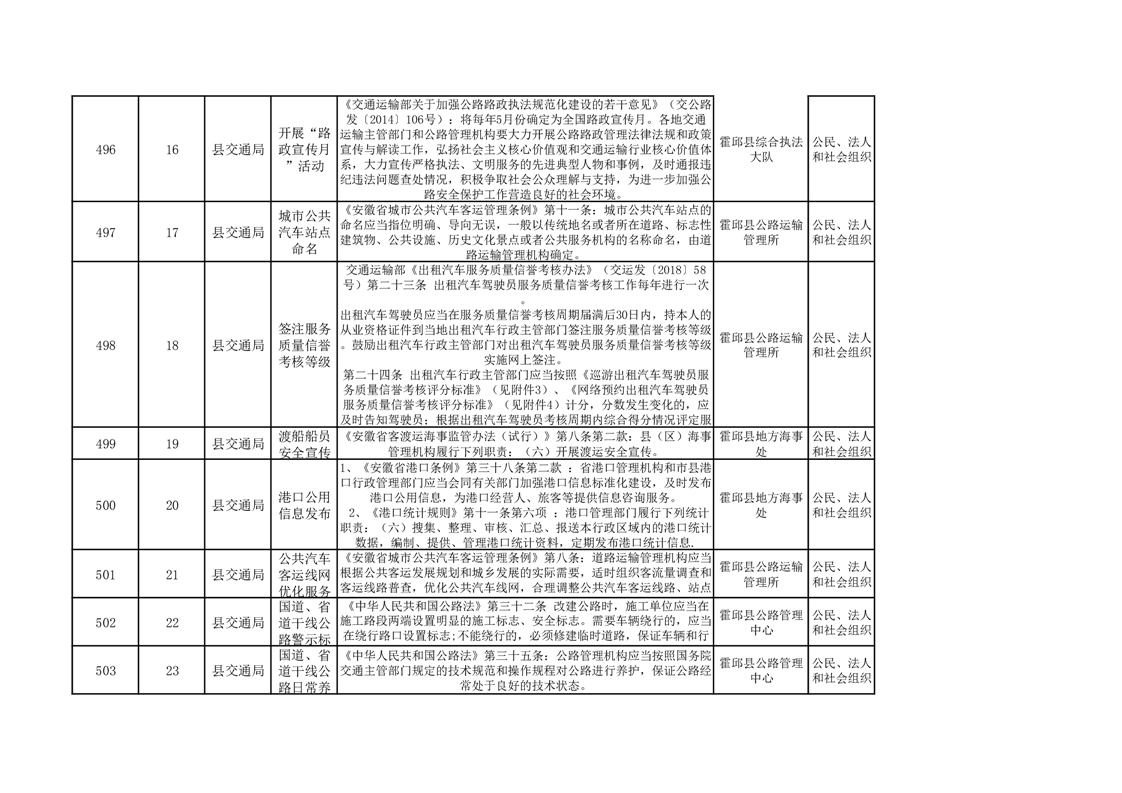 霍邱县交通运输局公共服务清单