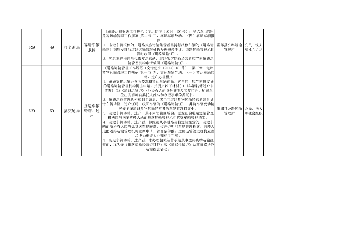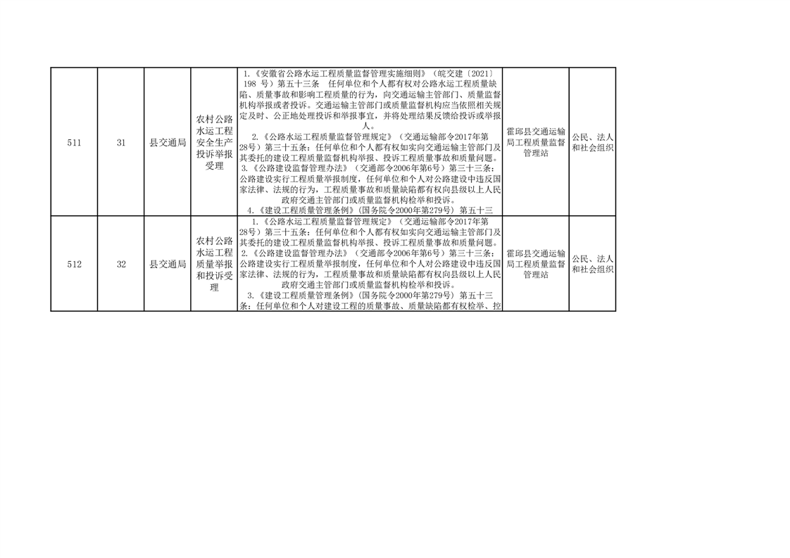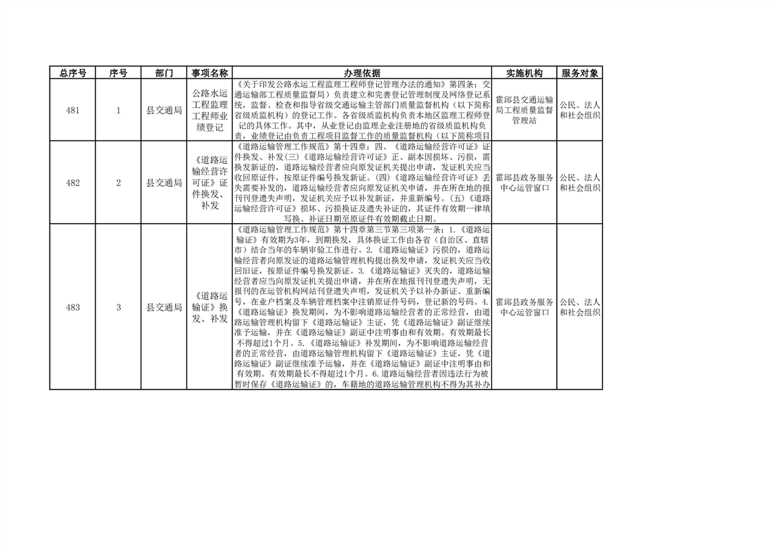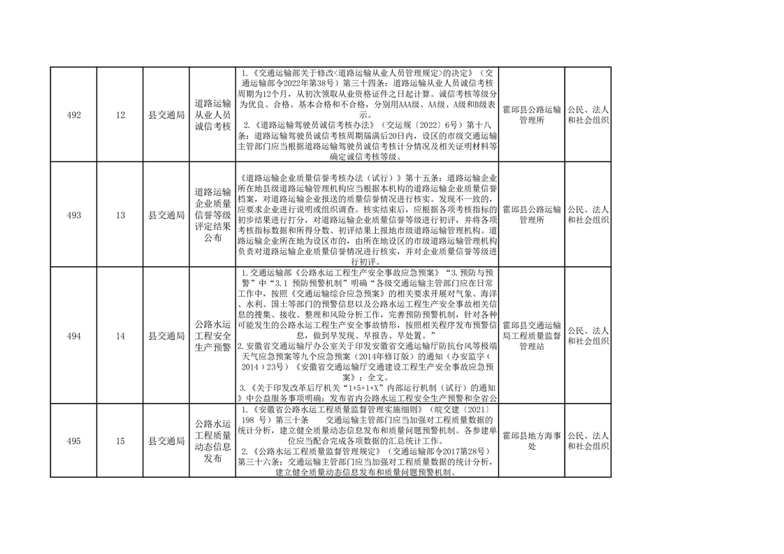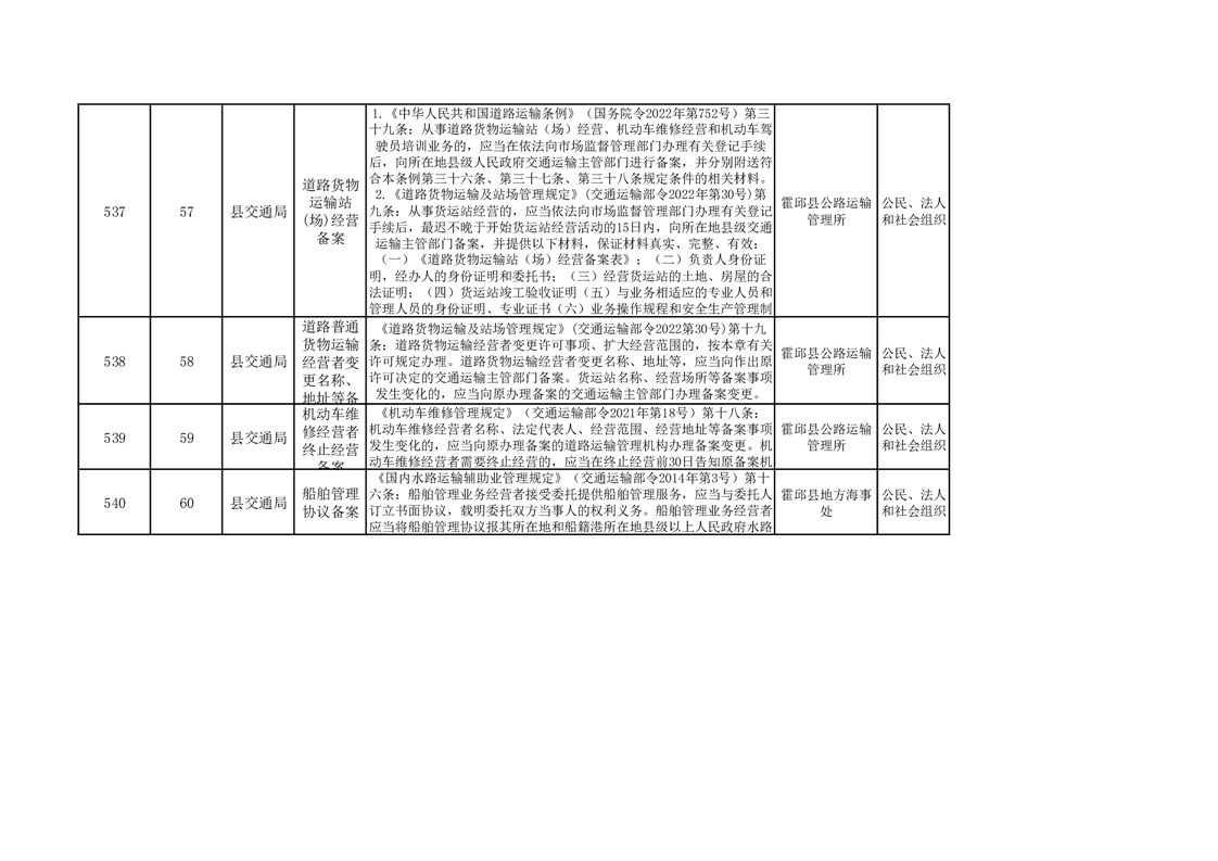 霍邱县交通运输局公共服务清单