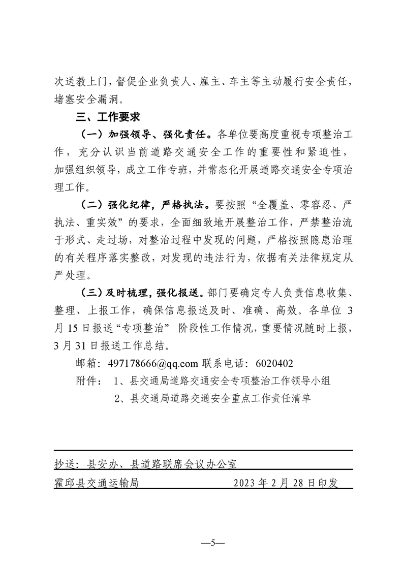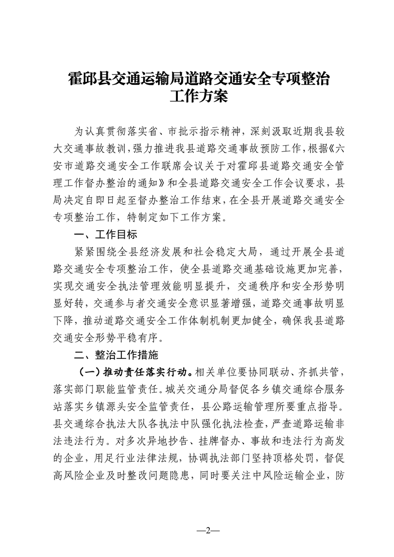 霍邱县交通运输局关于印发《道路交通安全专项整治方案》的通知