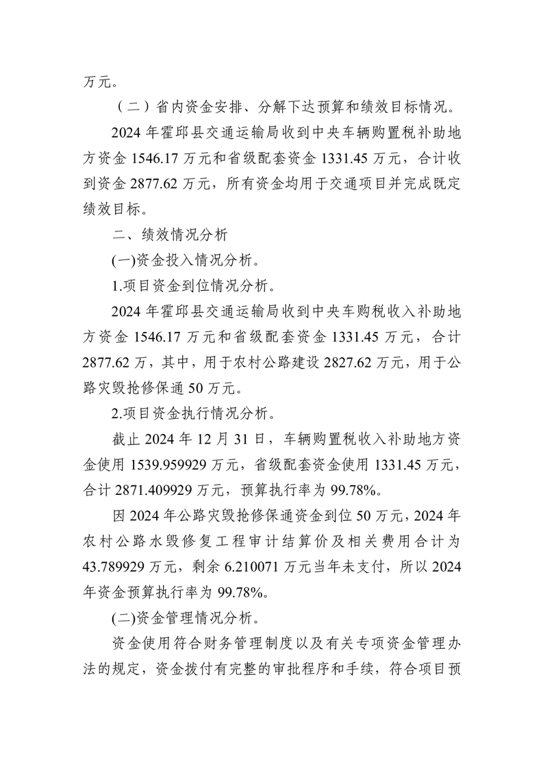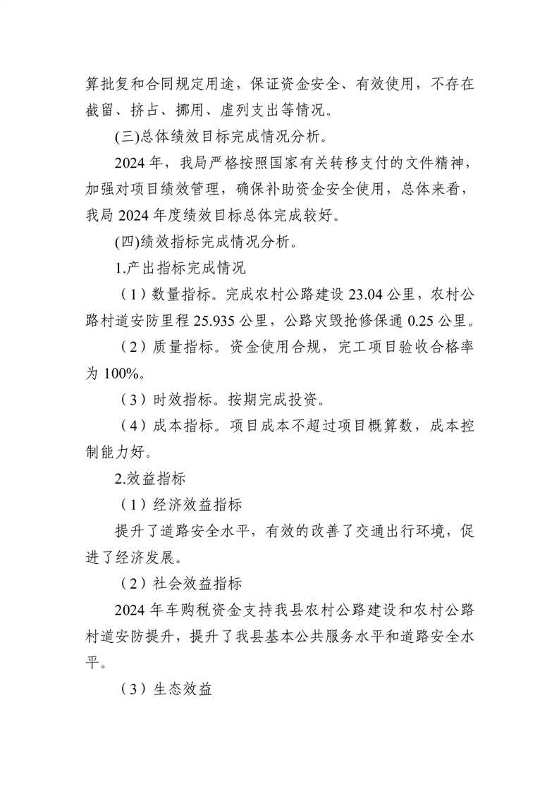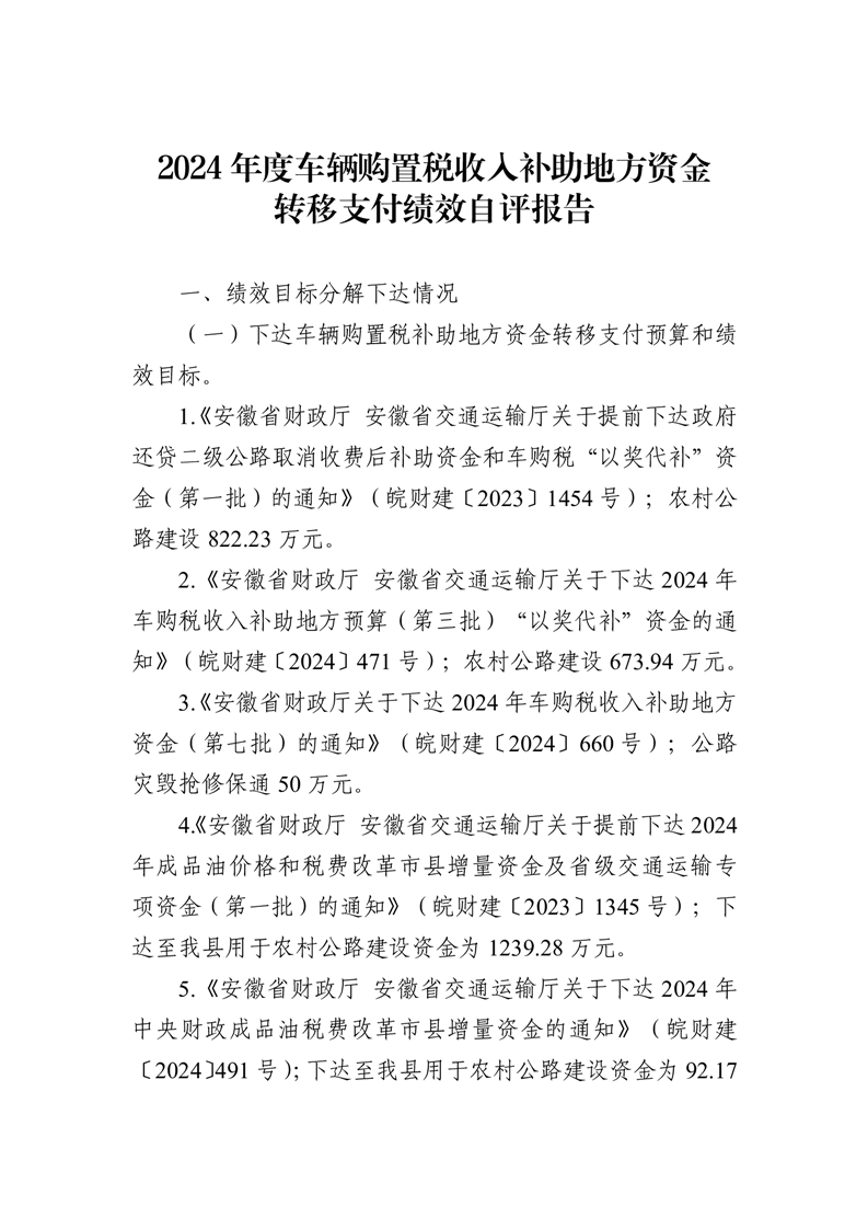 2024 年度车辆购置税收入补助地方资金转移支付绩效自评报告