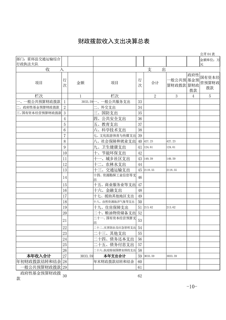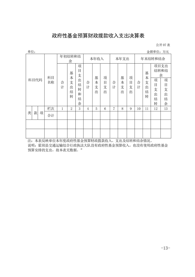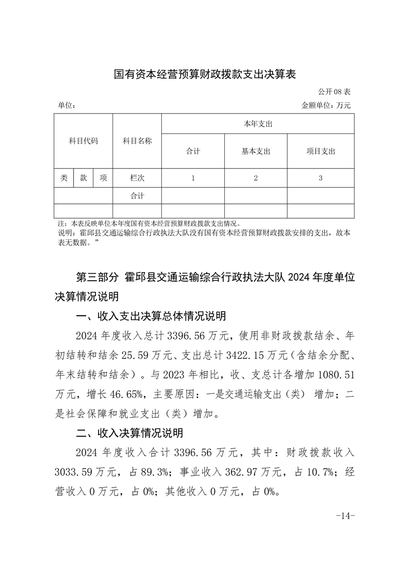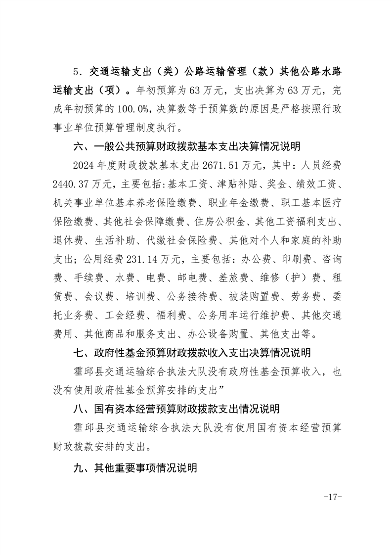 霍邱县交通运输综合行政执法大队2024 年度单位决算公开
