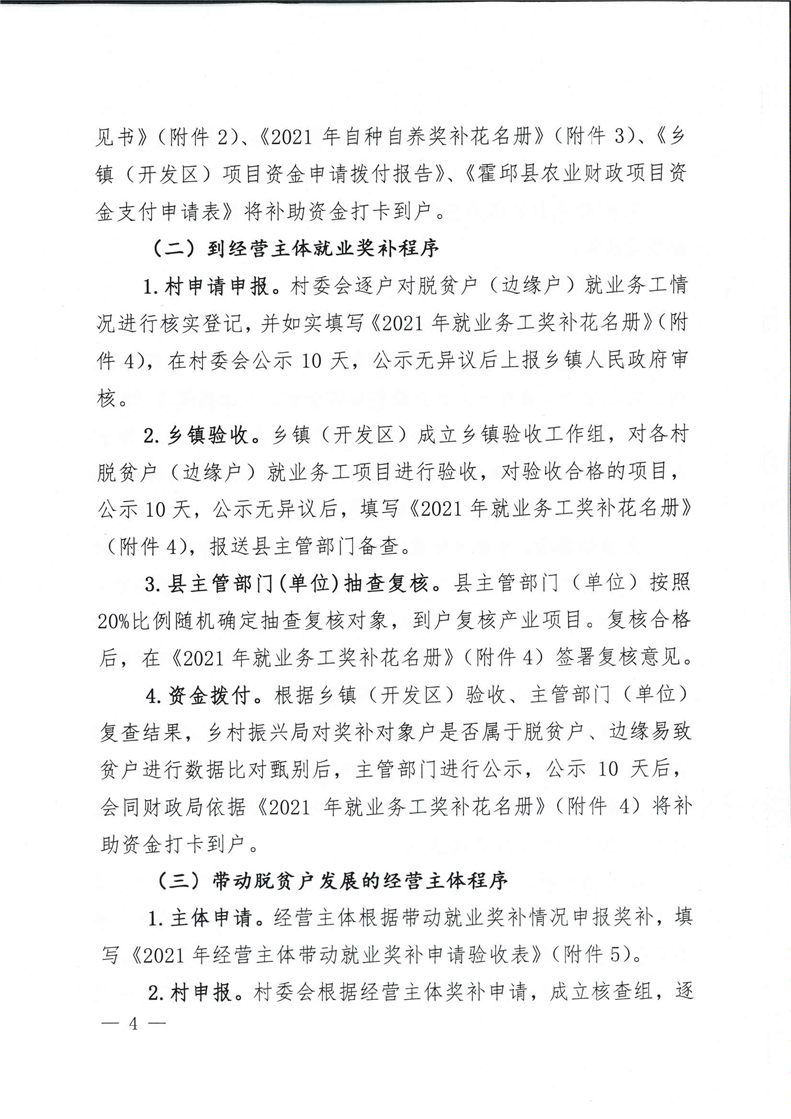 霍邱县农业农村局关于印发《2021年霍邱县“四带一自”产业帮扶奖补实施方案》的通知