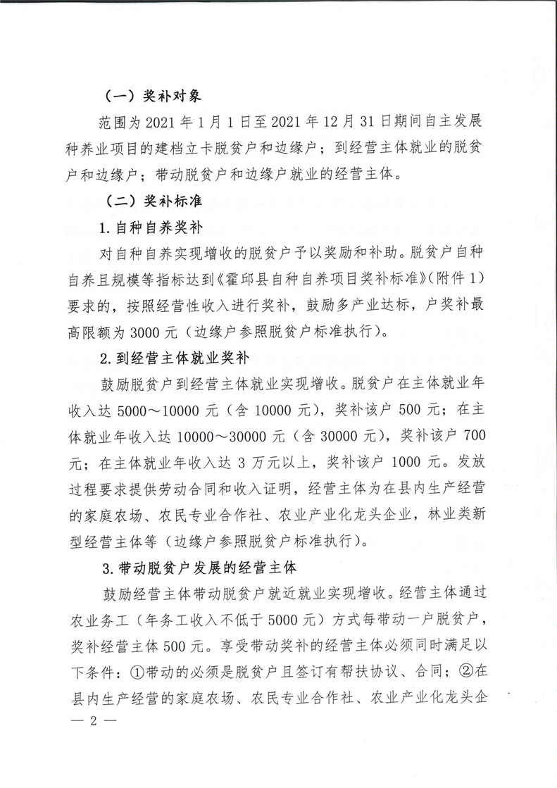 按照省、市、县对脱贫地区产业发展的工作要求,继续实施“四带一自”提升行动,根据霍邱县产业发展情况,特制定《2021年霍邱县“四带一自”产业帮扶奖补实施方案》,现印发给你们,请认真贯彻落实。