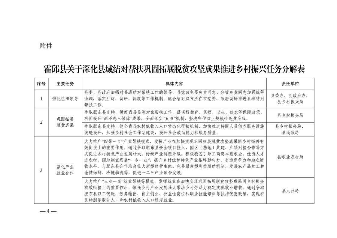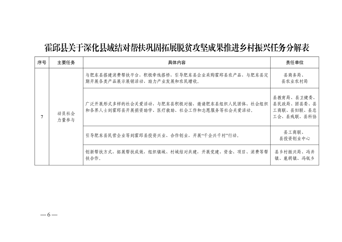 附件:霍邱县关于深化县域结对帮扶巩固拓展脱贫攻坚成果推进乡村振兴任务分解表