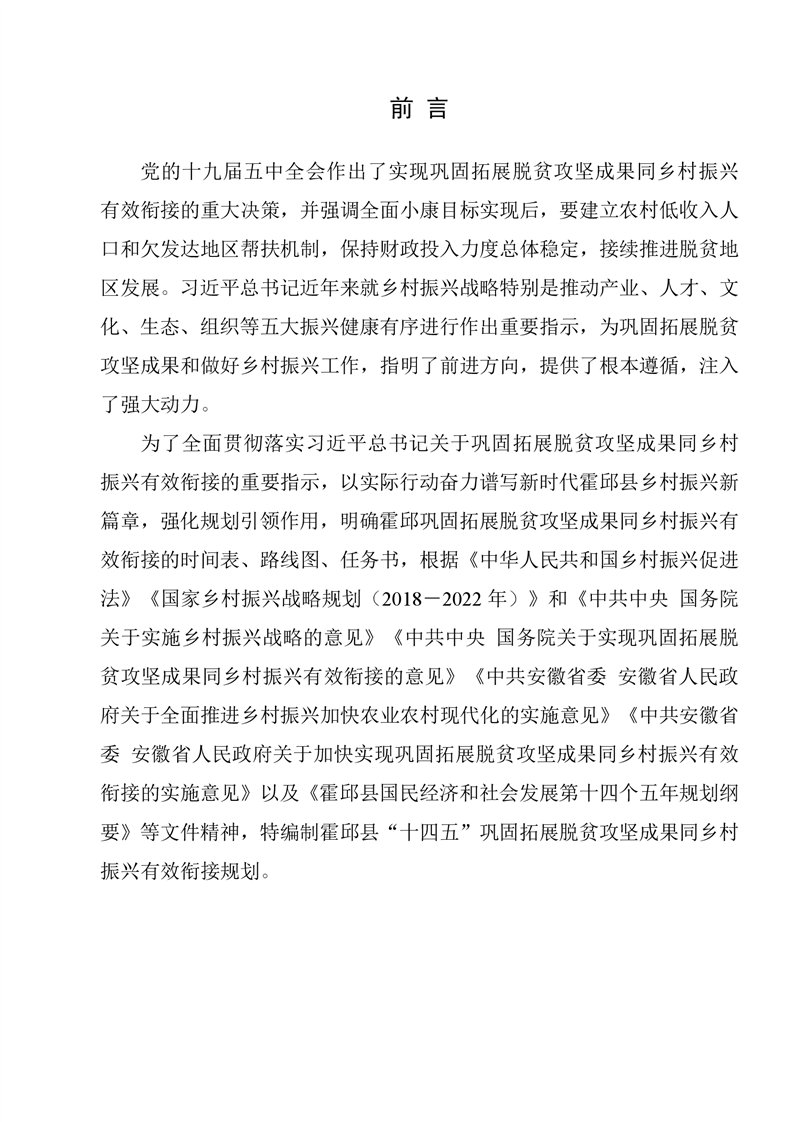 霍邱县“十四五”巩固拓展脱贫攻坚成果同乡村振兴有效衔接规划