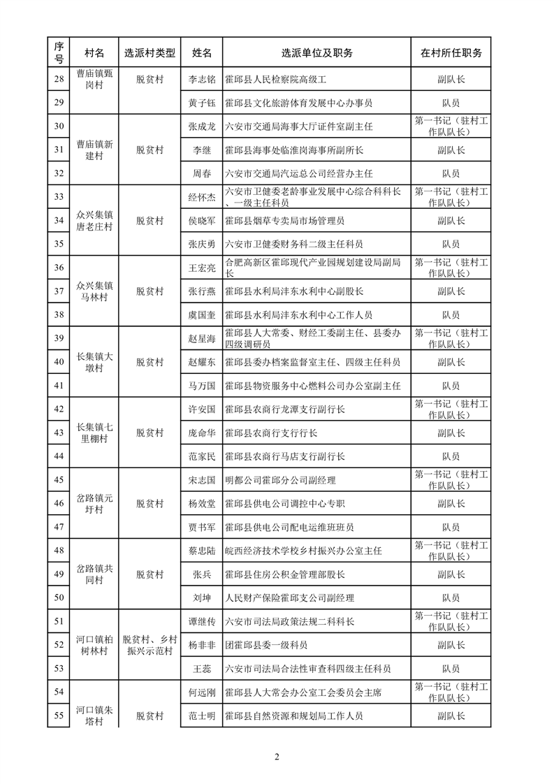 【单位包村、干部包户】霍邱县第八批选派帮扶干部到村任职情况表