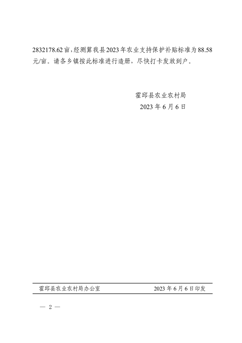 霍邱县农业农村局关于确定2023年度农业支持保护补贴发放标准的通知