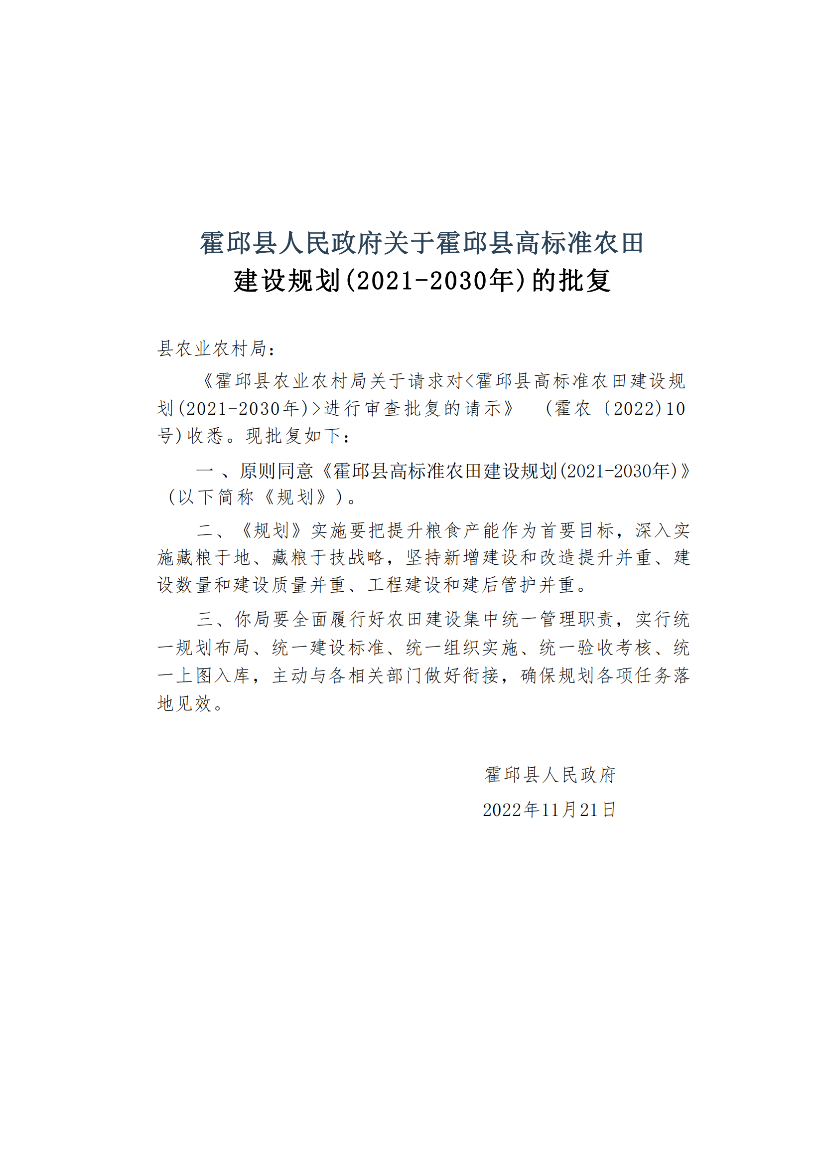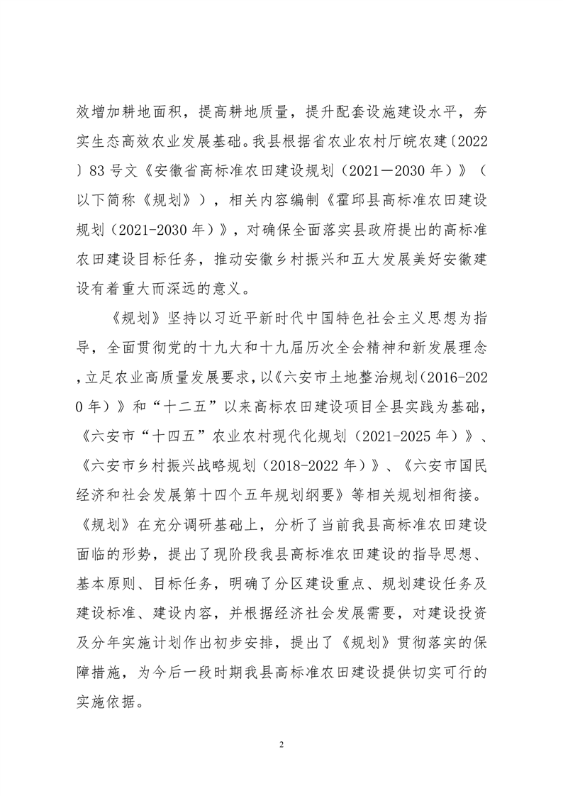 霍邱县2021-2030年高标准农田建设规划