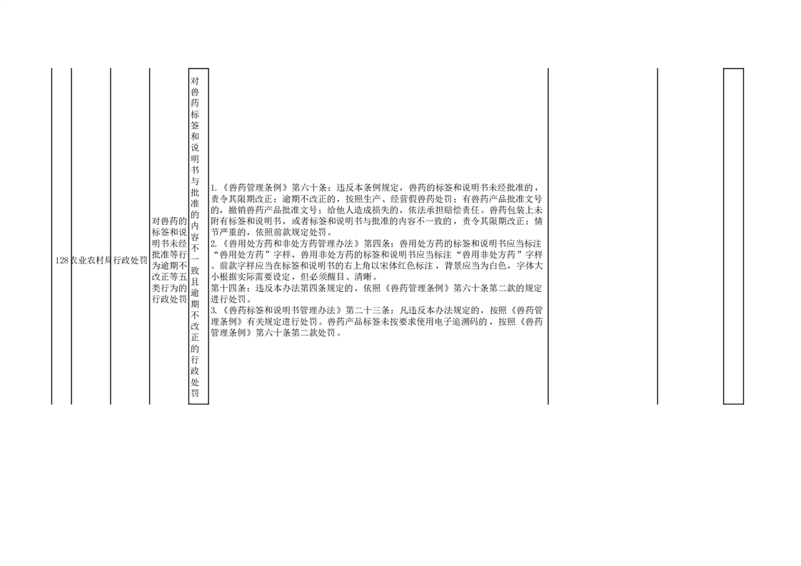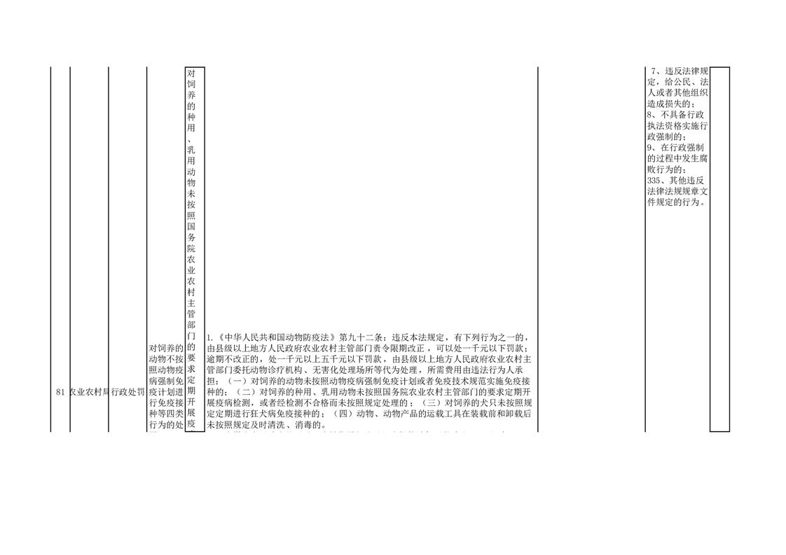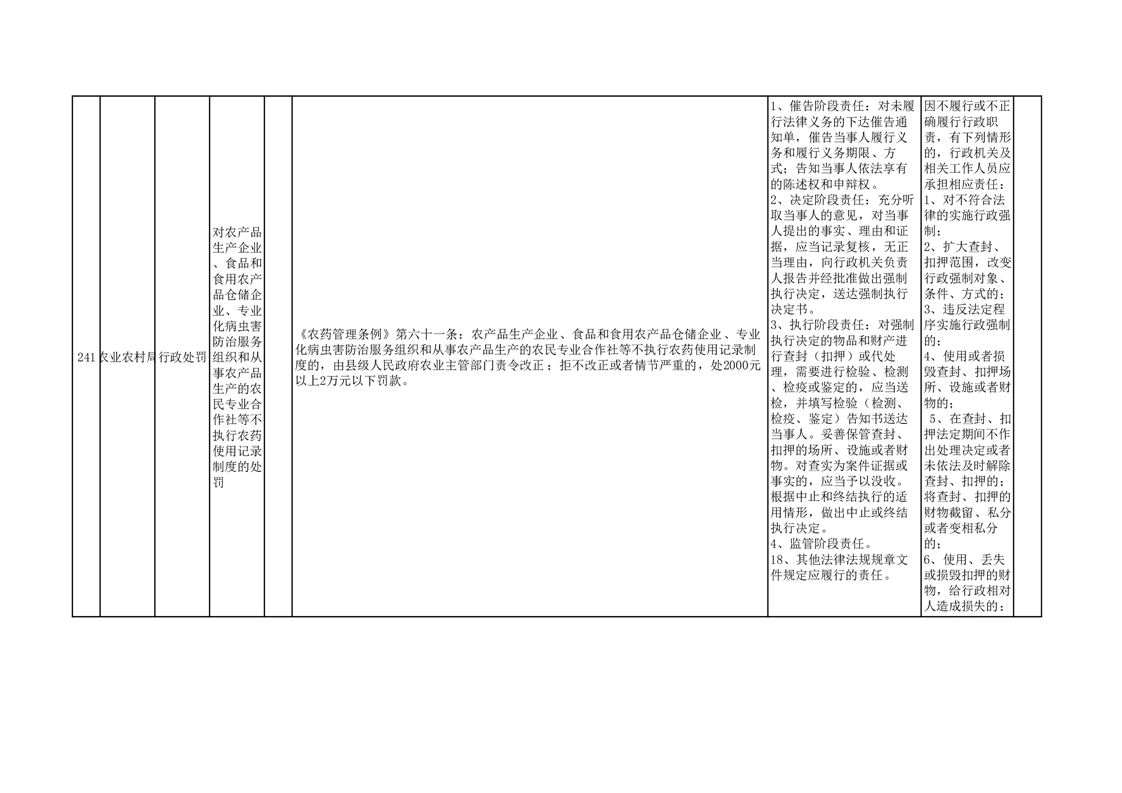 【分目录】县农业农村局权责清单 ——行政处罚