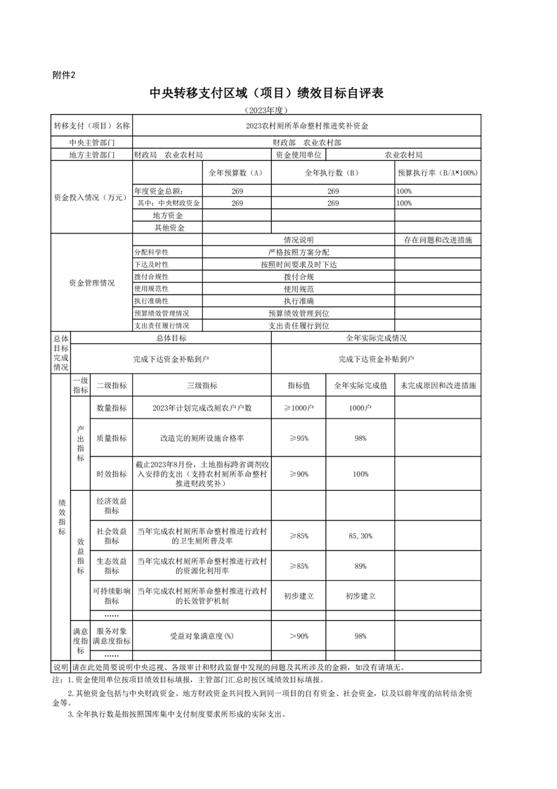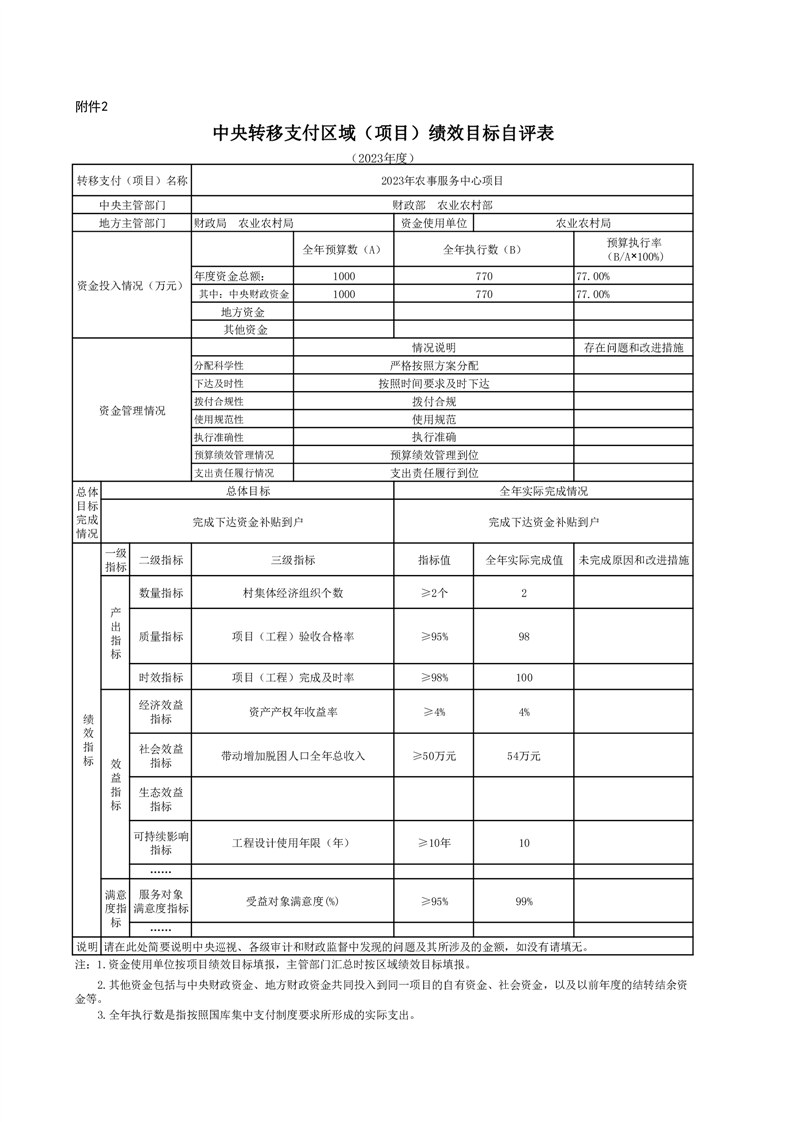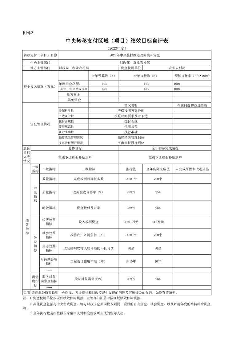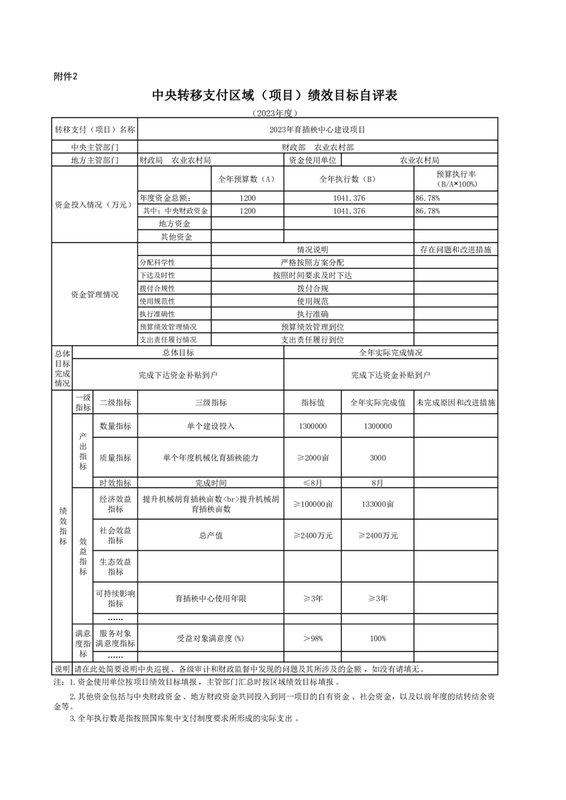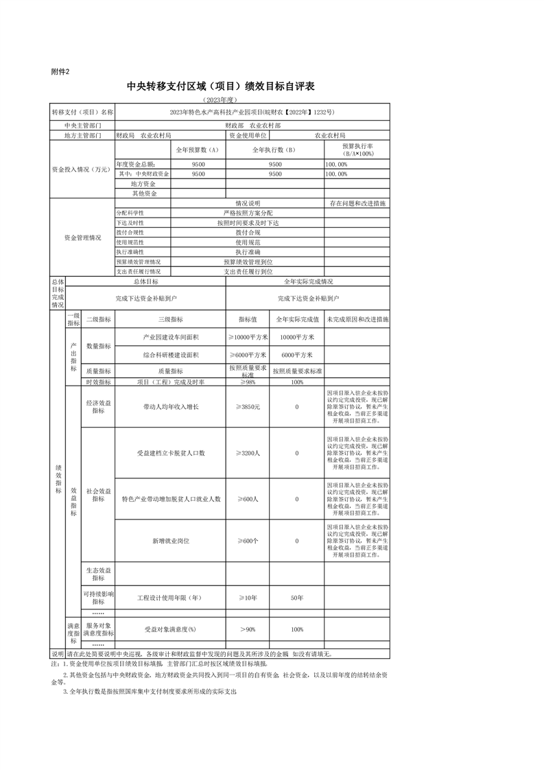 霍邱县农业农村局2023年度中央转移支付区域(项目)绩效目标自评表