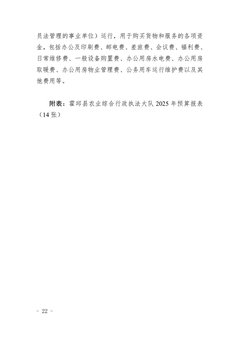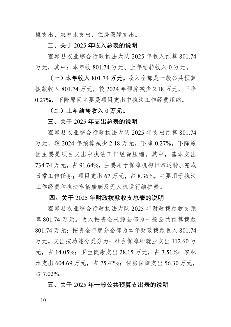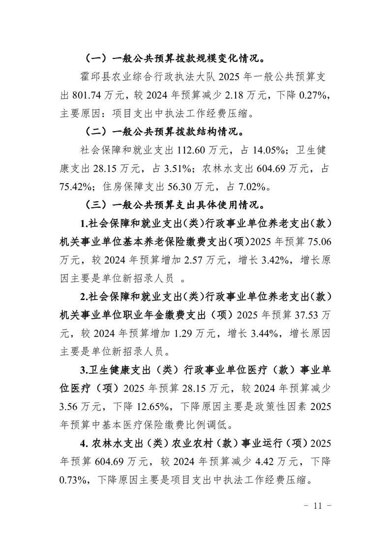 霍邱县农业综合行政执法大队2025年单位预算公开
