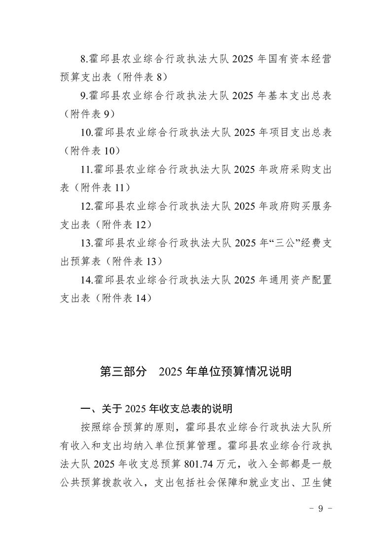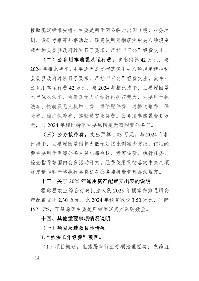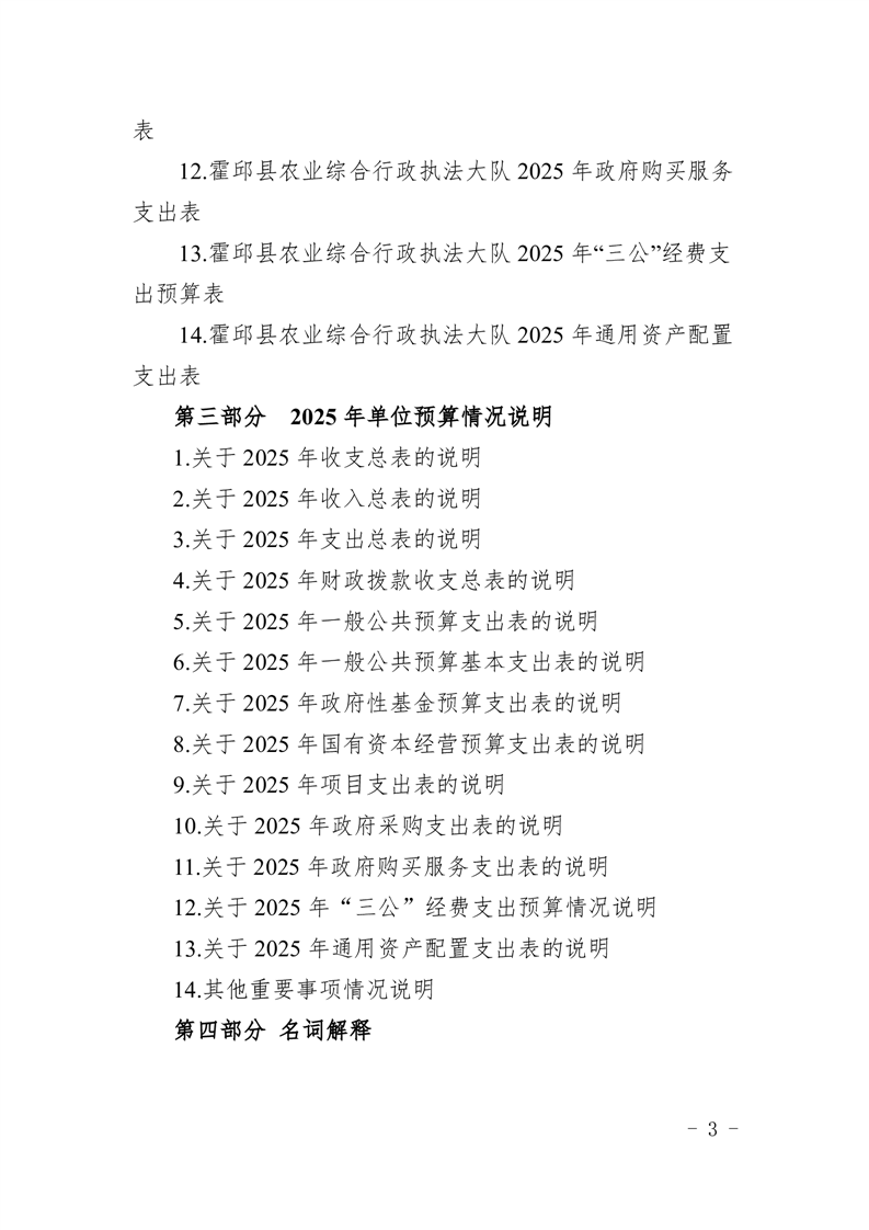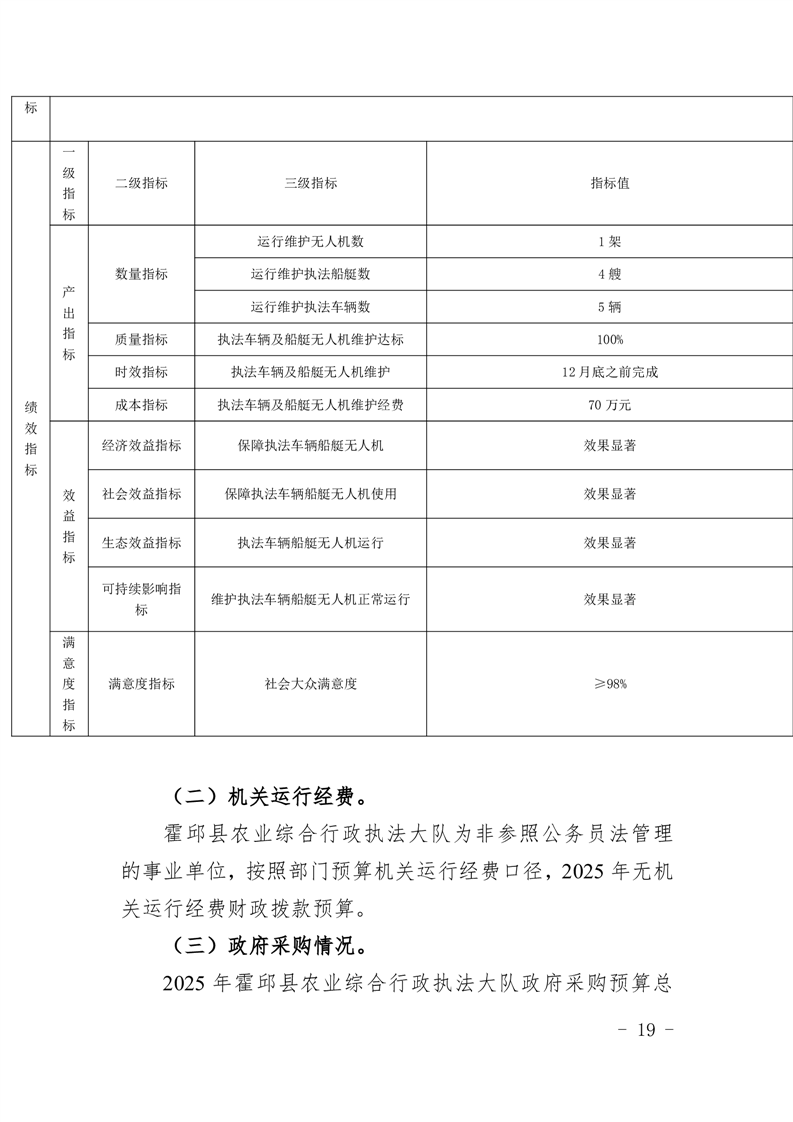 霍邱县农业综合行政执法大队2025年单位预算公开