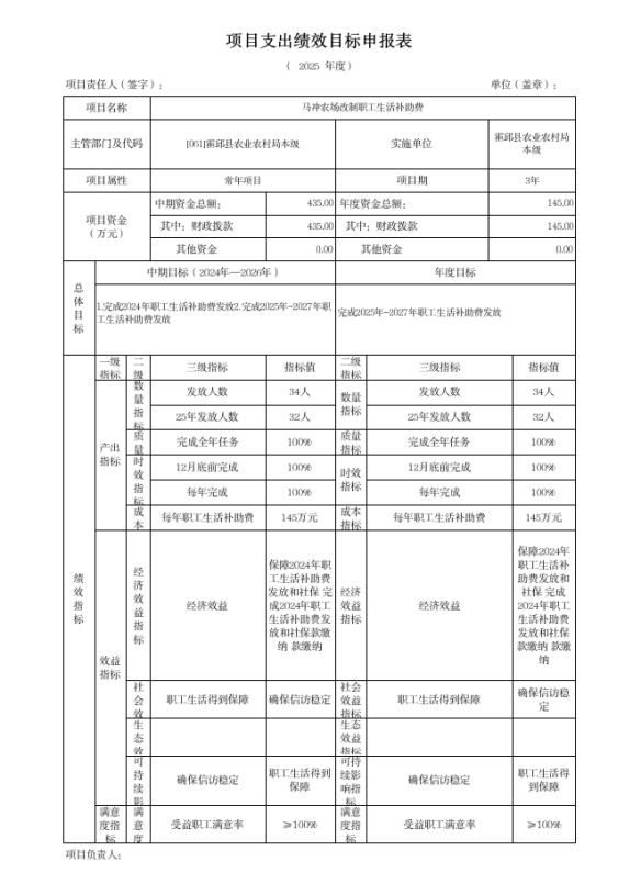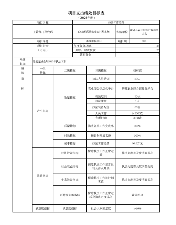 霍邱县农业农村局2025年度项目支出绩效目标