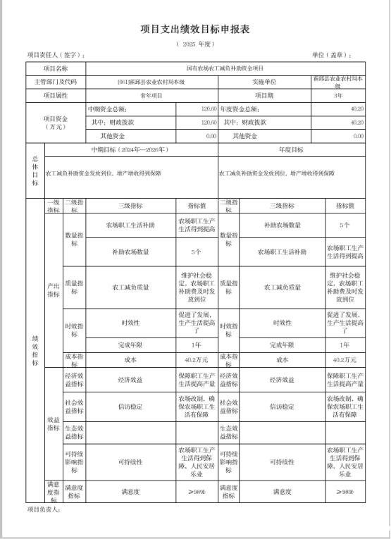 国有农场农工减负补助资金项目 |