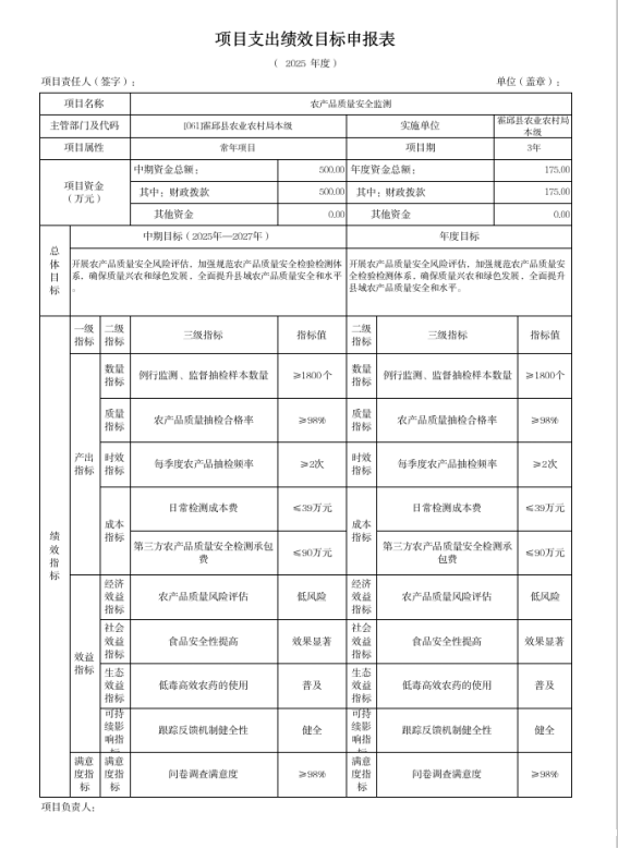 农产品质量安全监管经费 |