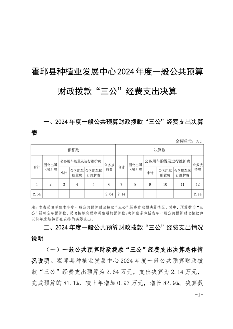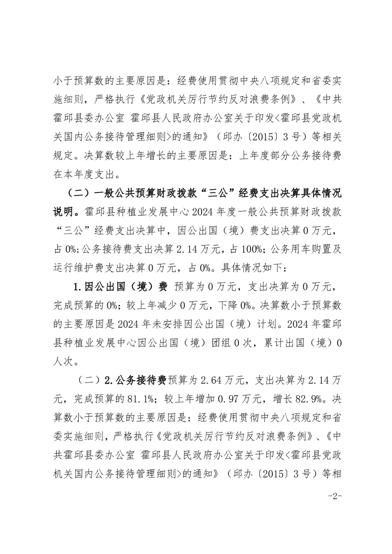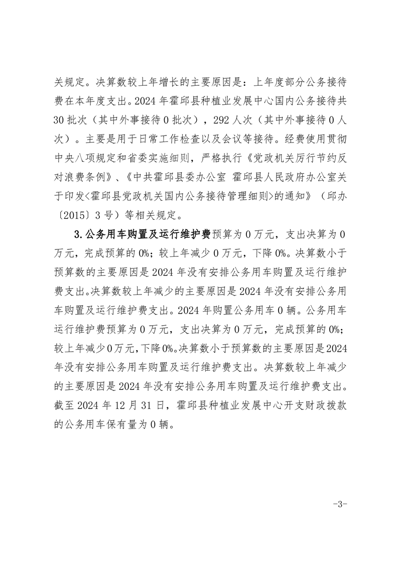霍邱县种植业发展中心2024年度一般公共预算财政拨款“三公”经费支出决算