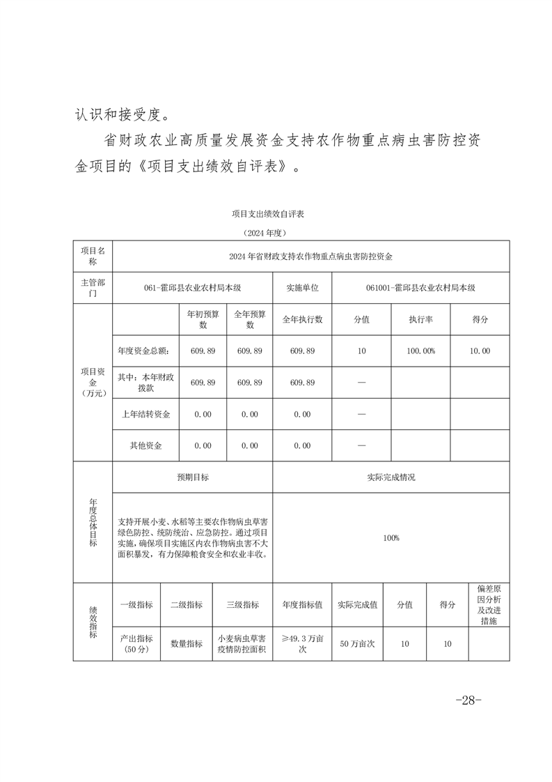 附件1:霍邱县农业农村局部门2024年农业项目绩效自评表.pdf