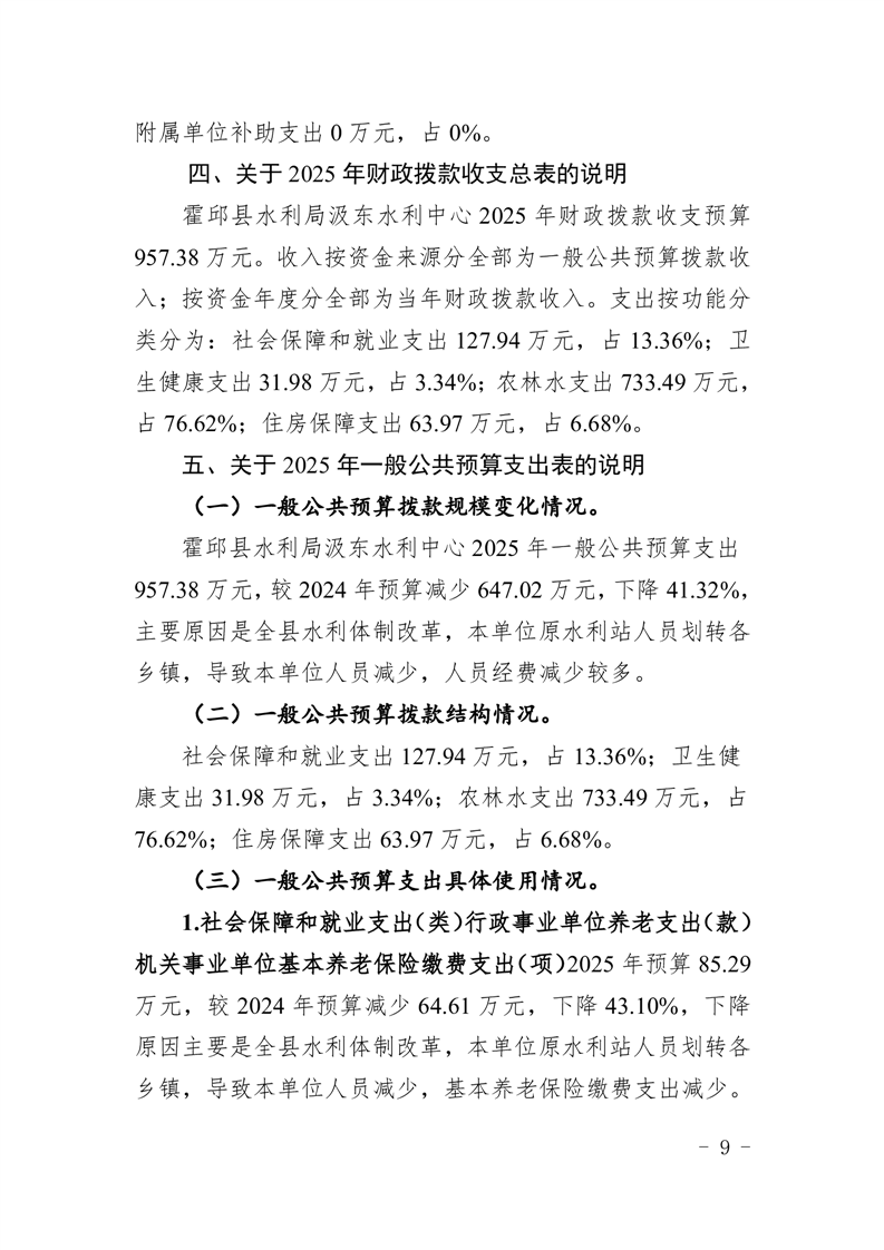 霍邱县水利局汲东水利中心2025年单位预算公开