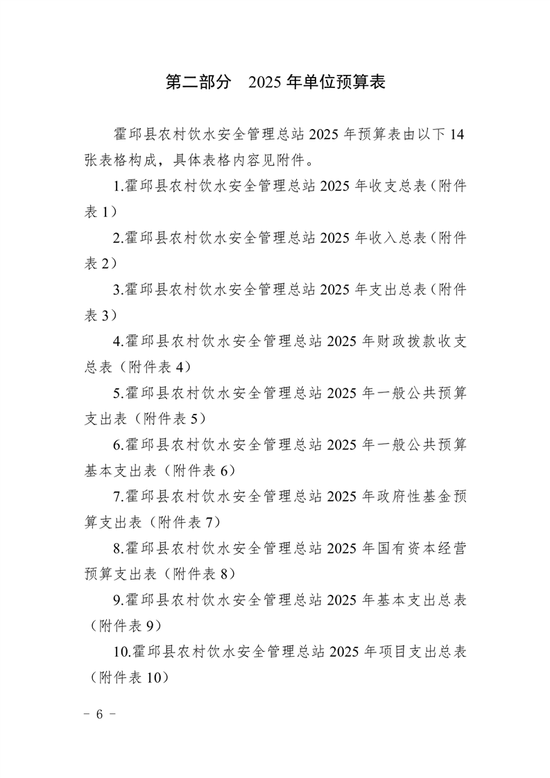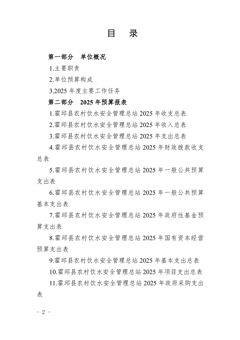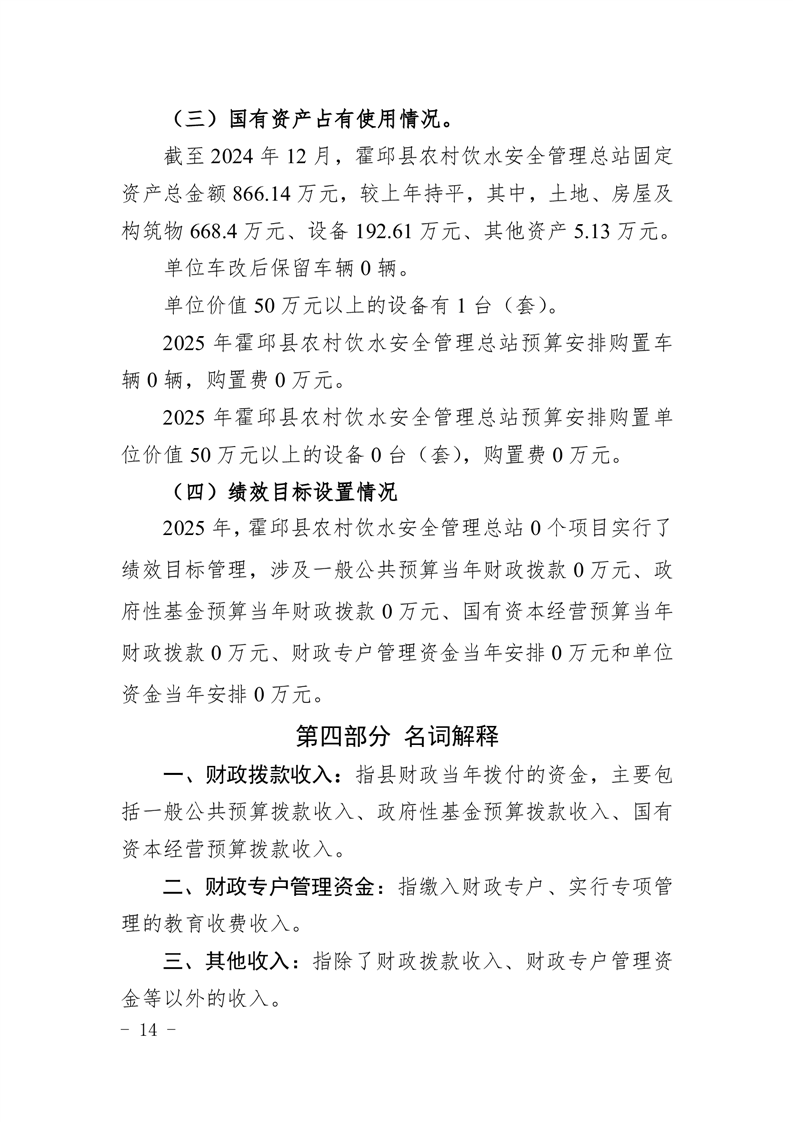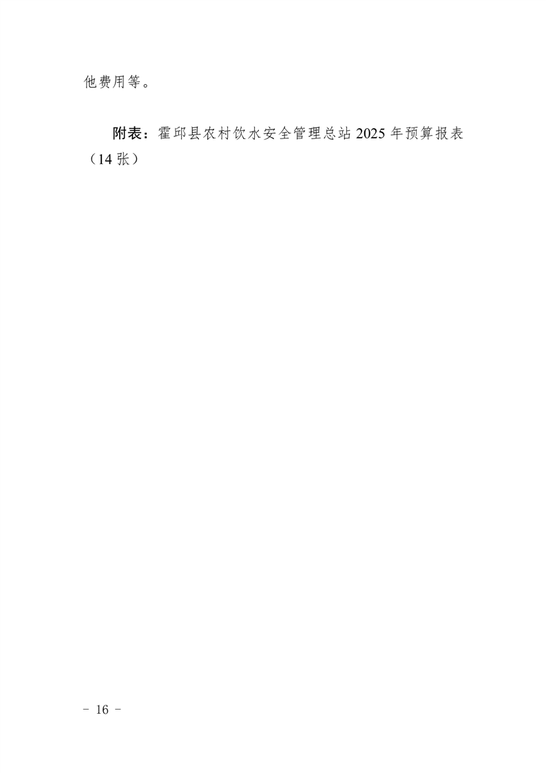 霍邱县农村饮水安全管理总站2025年单位预算公开