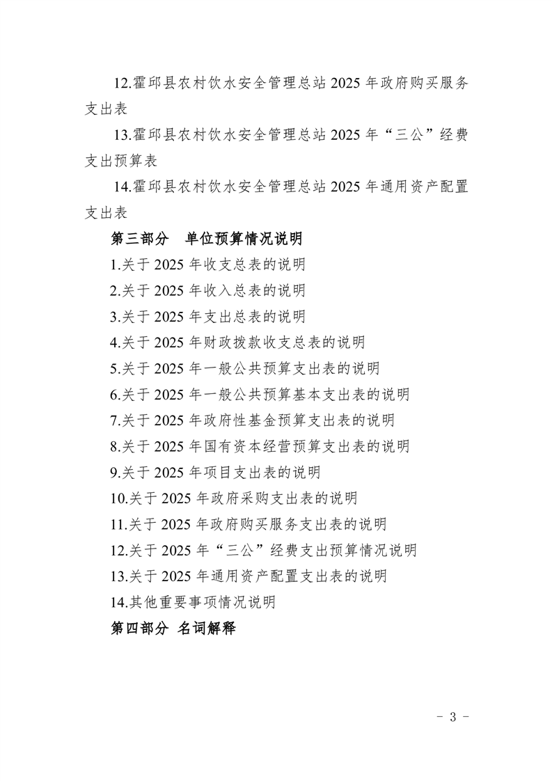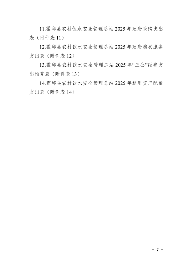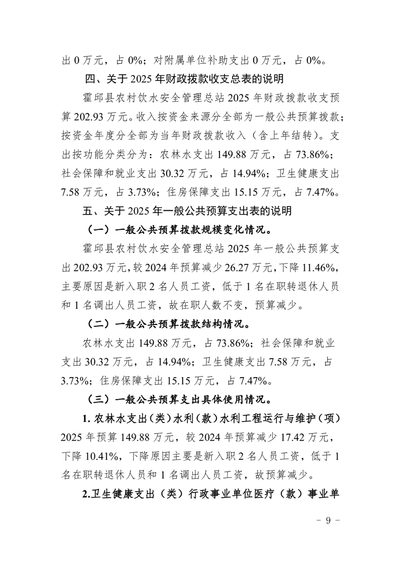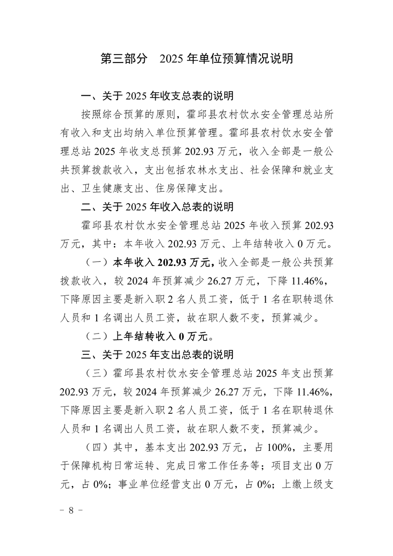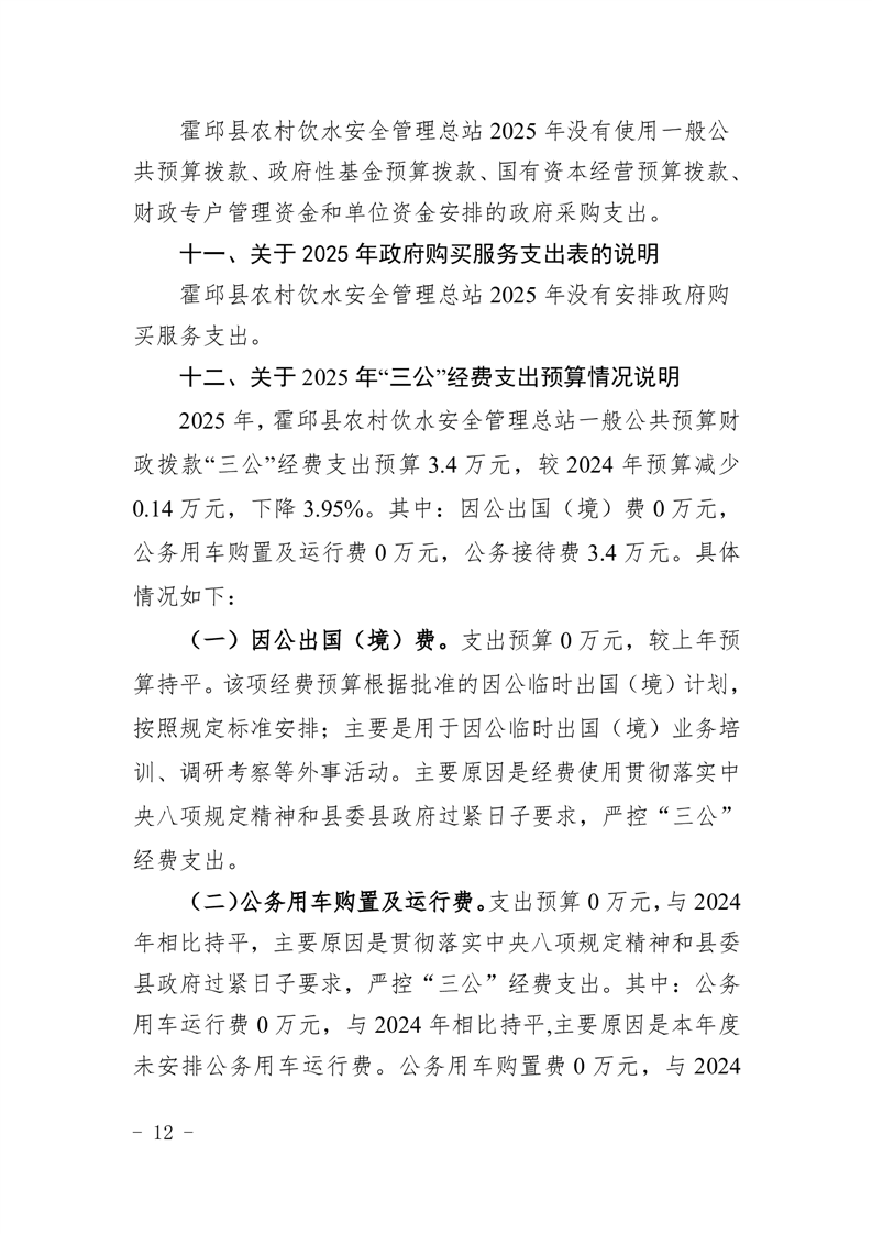 霍邱县农村饮水安全管理总站2025年单位预算公开