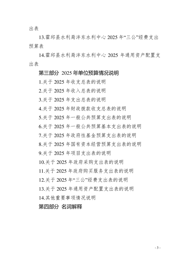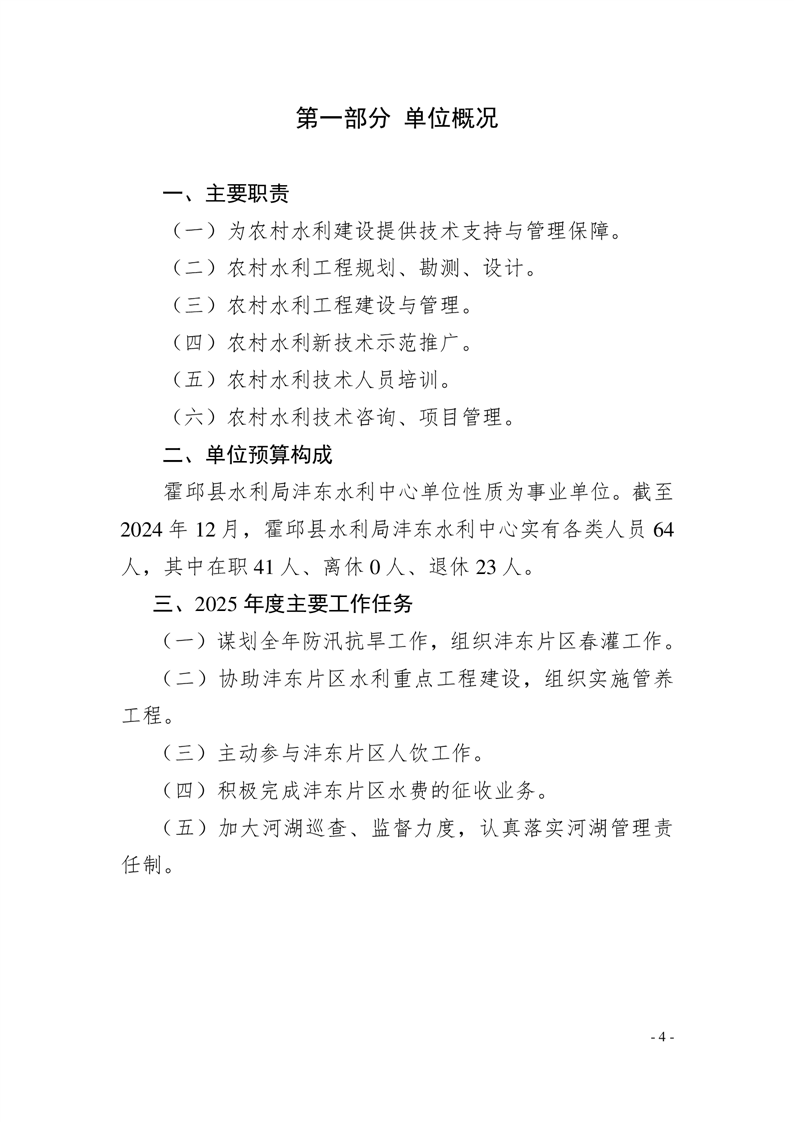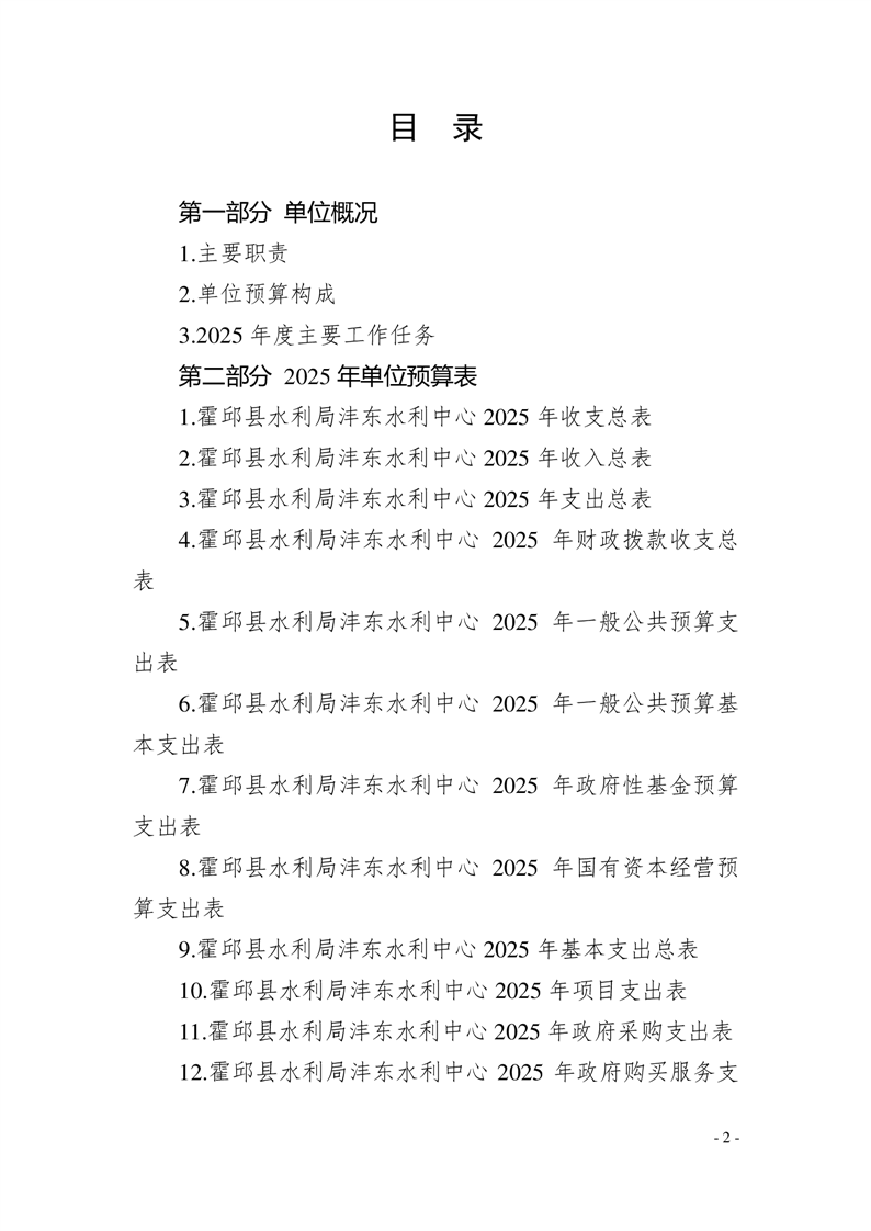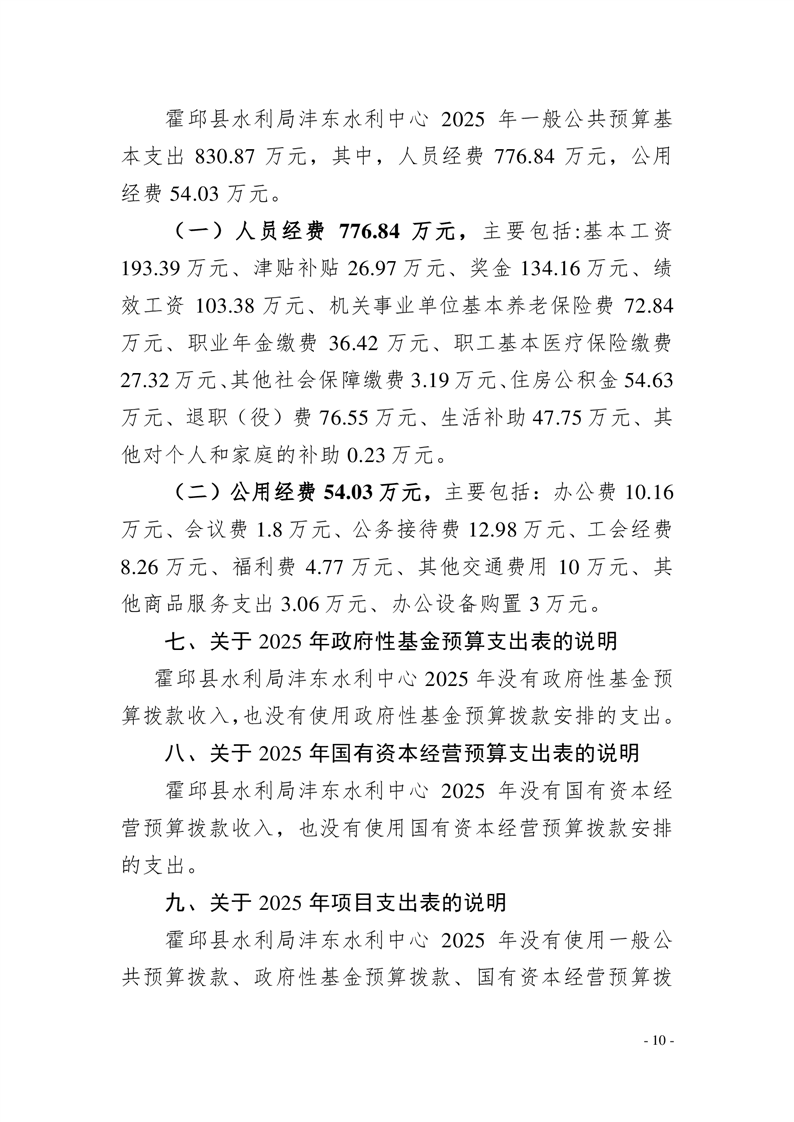 霍邱县水利局沣东水利中心2025年单位预算公开