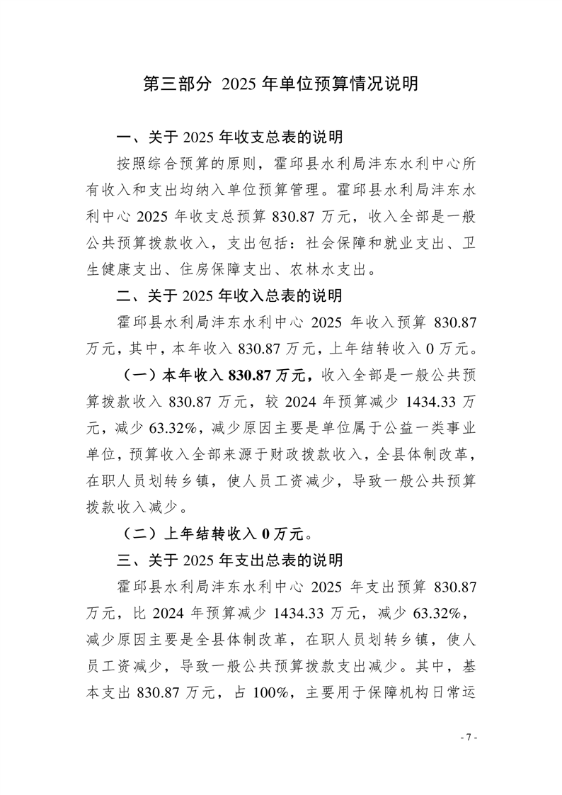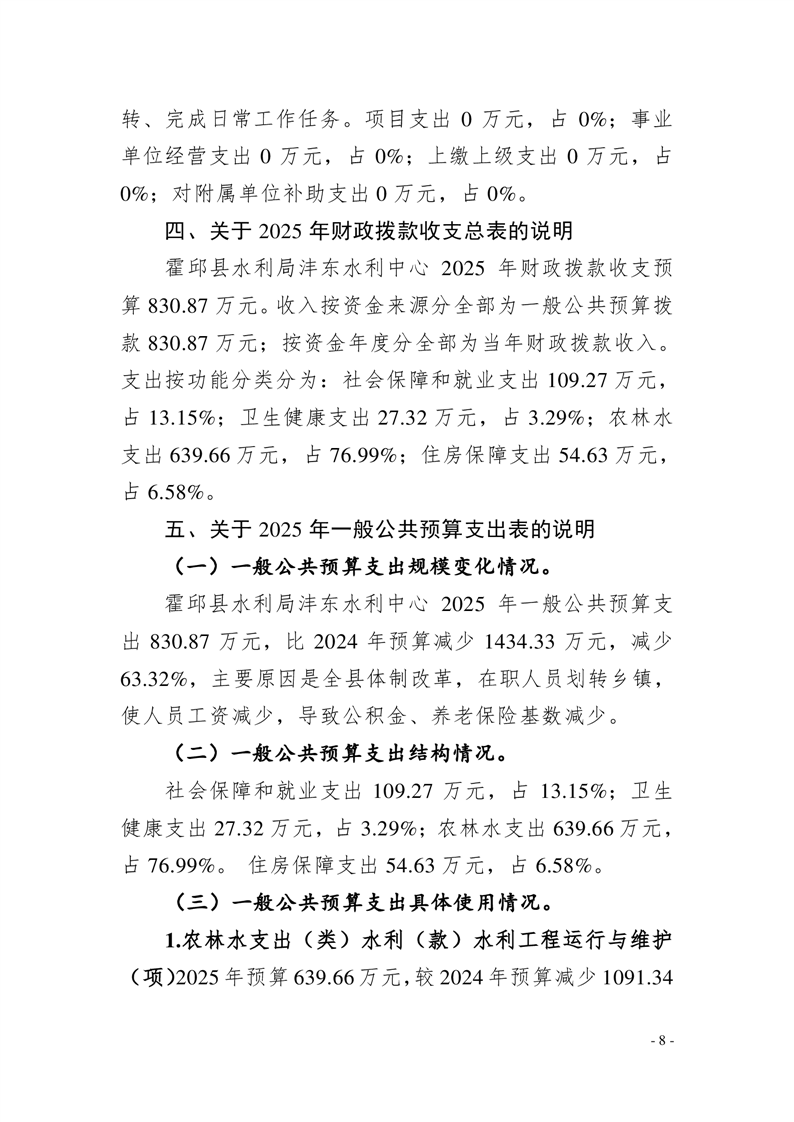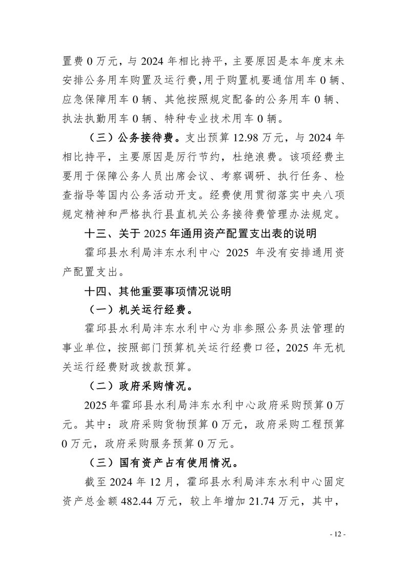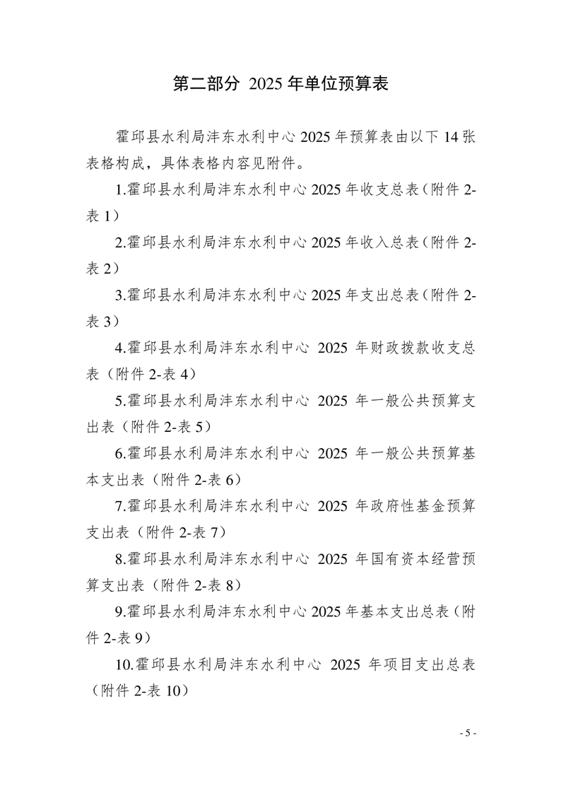 霍邱县水利局沣东水利中心2025年单位预算公开