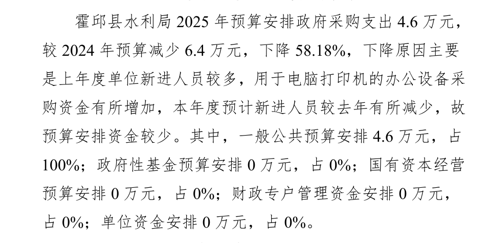 霍邱县水利局2025年招标采购预算情况