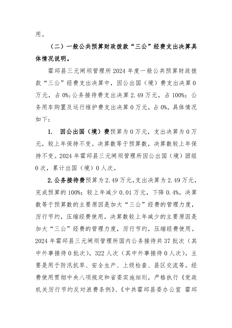霍邱县三元闸坝管理所2024年度一般公共预算财政拨款“三公经费”支出决算