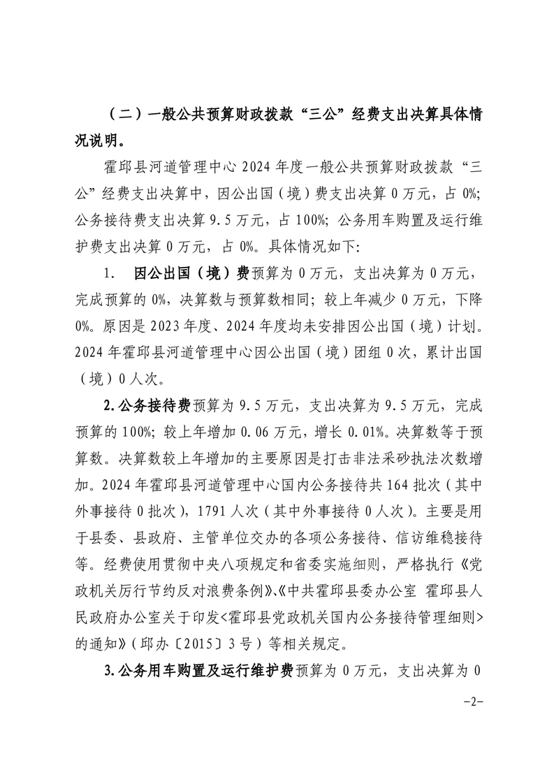 霍邱县河道管理中心2024年度一般公共预算财政拨款“三公”经费支出决算